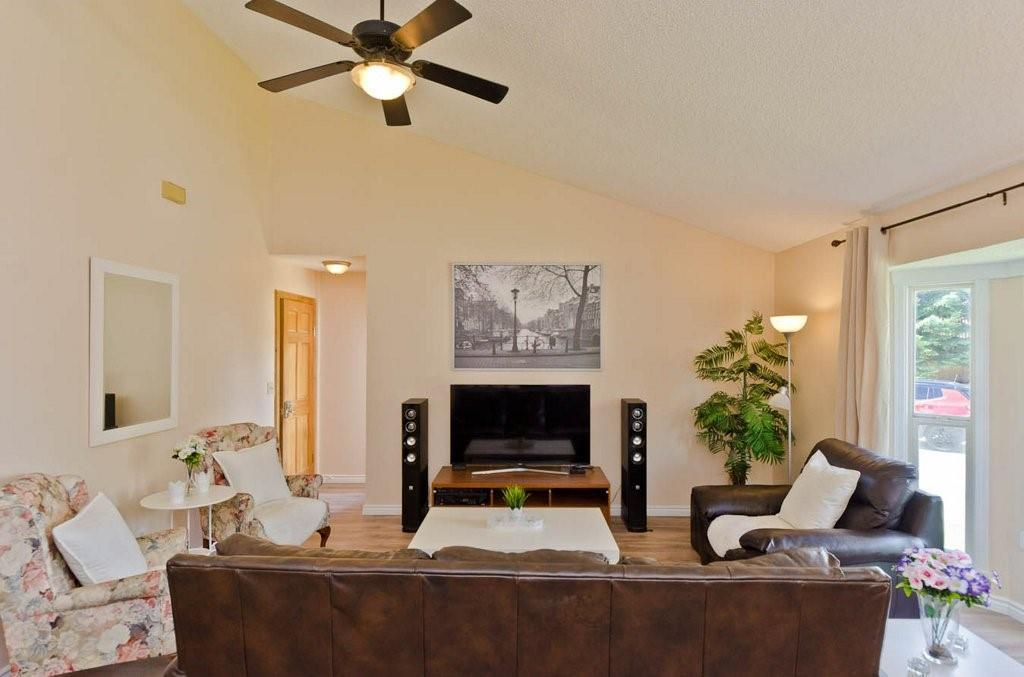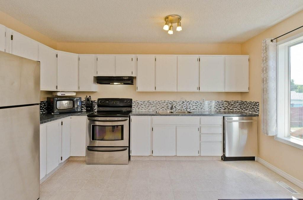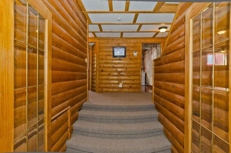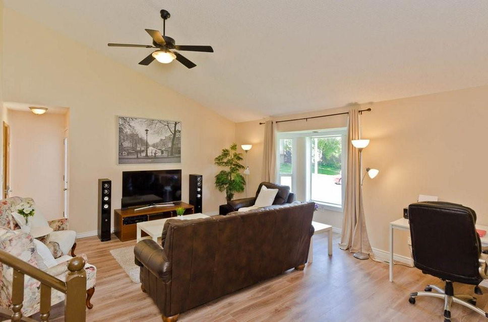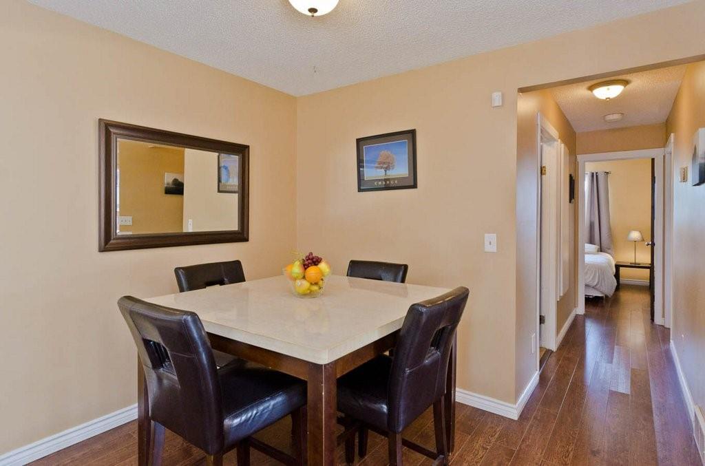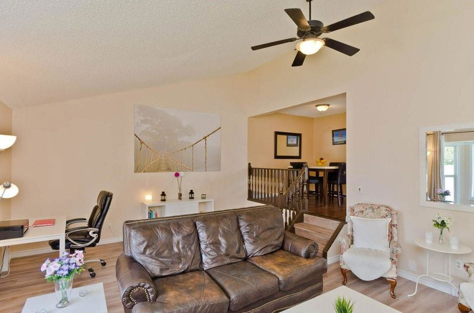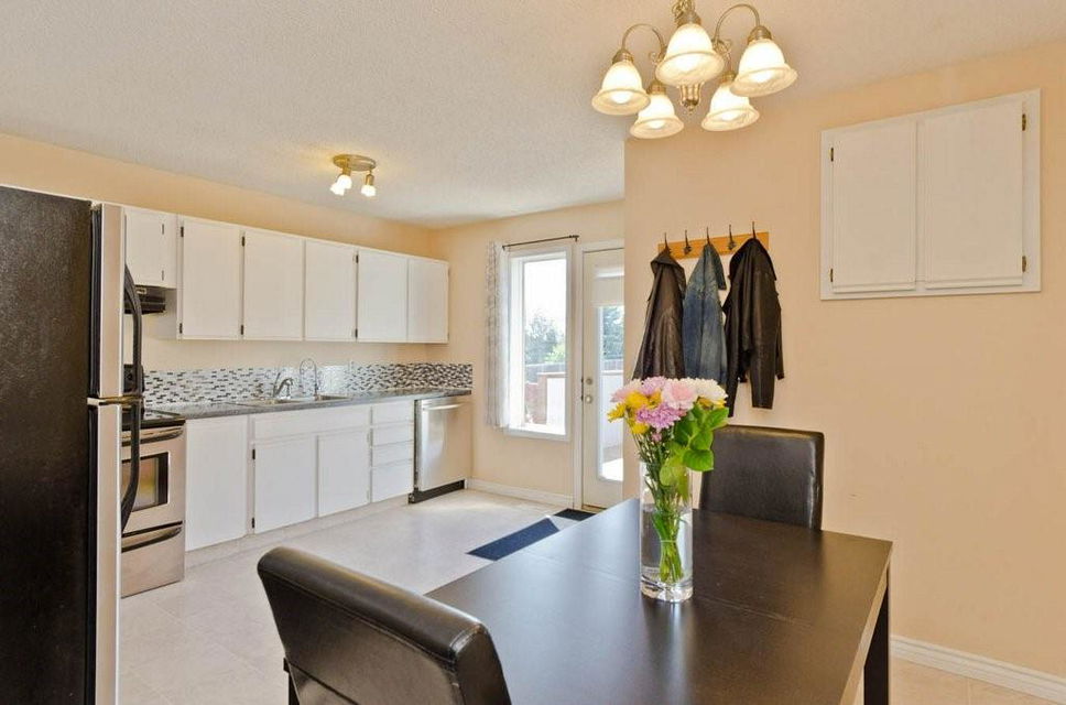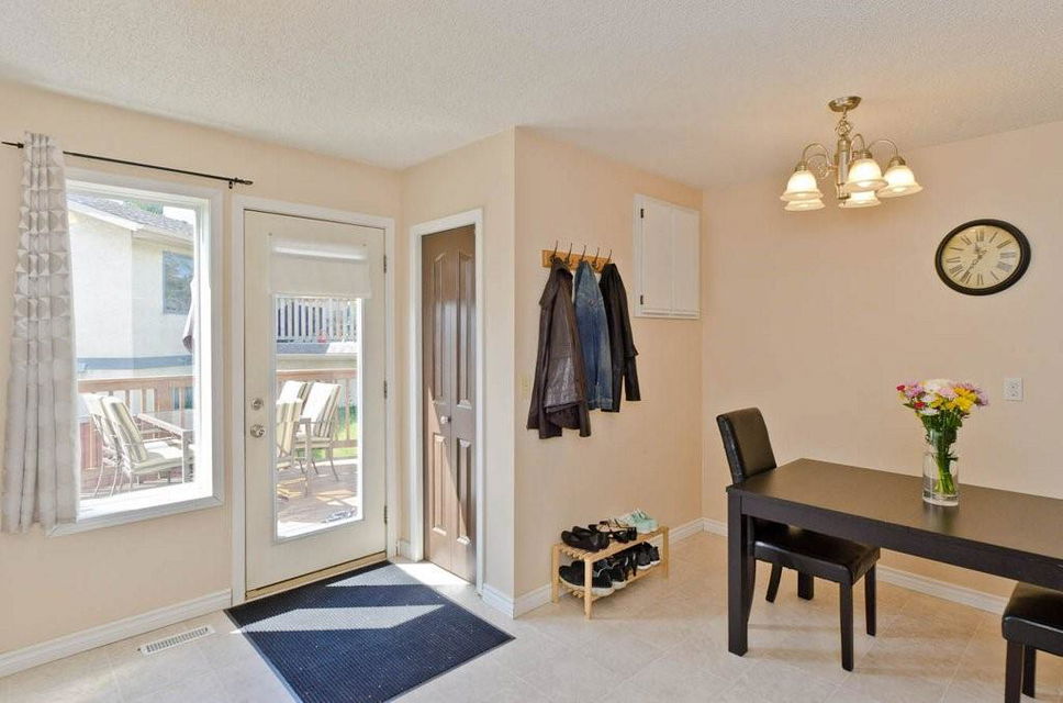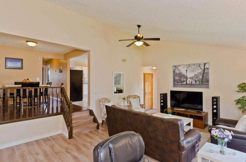 Great opportunity to buy your own home! This bungalow situated on a pie shaped lot is a great price! Lots of natural light with big windows and vaulted ceilings. Tons of room on the main floor with a big living room and a few steps up to a formal dining room. The kitchen has lots of cabinet and counter space, stainless steel appliances and is large enough for a table. Step outside onto the deck overlooking the large backyard. 2 bedrooms on the main floor including the spacious master suite with 2 piece ensuite. The lower level is developed with a log cabin feel with a rec room with gas fireplace, 3rd bedroom and a huge 4 piece bath including soaker tub, ample storage and laundry area. Tons of room on this pie shaped lot for a fire pit and toys. Double detached garage and additional parking space. Close to a park, schools and amenities.Bonus — All fresh paint and New Roof last year