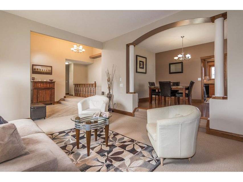 Immediate possession available. This fully developed bungalow is located in Grande Pointe Estates of Strathmore. You will love the traditional street lamps and custom sidewalks in this upscale cul-de-sac. Offers a spacious main floor with traditional 1785 sq ft consisting of a large sunken foyer, formal living room with stone fireplace, formal dining room, galley style kitchen with granite, stainless appliances and breakfast nook, a family room with fireplace. Down the hall are 3 large bedrooms, a laundry room, and the main bathroom. The master bedroom will accommodate a large furniture and features a window seat. The ensuite is complete with soaker tub, shower, and walk in closet. Upgrades of hardwood floors, granite counters, large windows, and more. The basement is finished with 2 more large bedrooms, a large family room, full bathroom, and a great media room with bar.