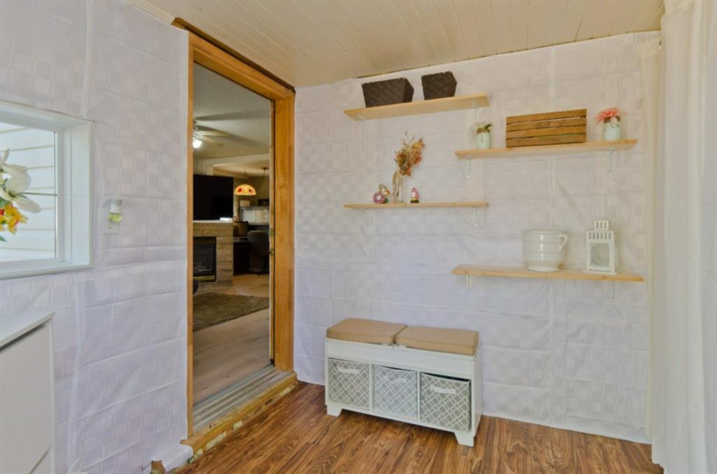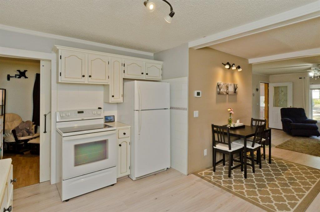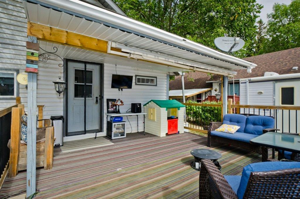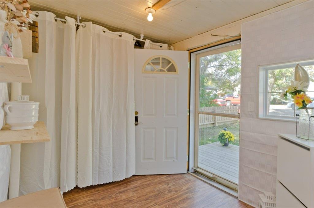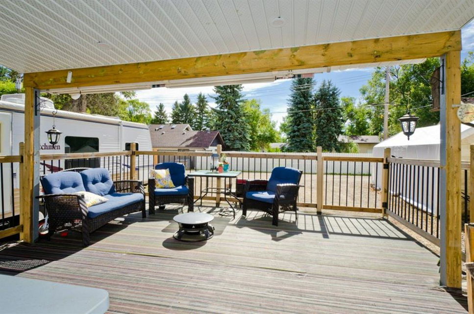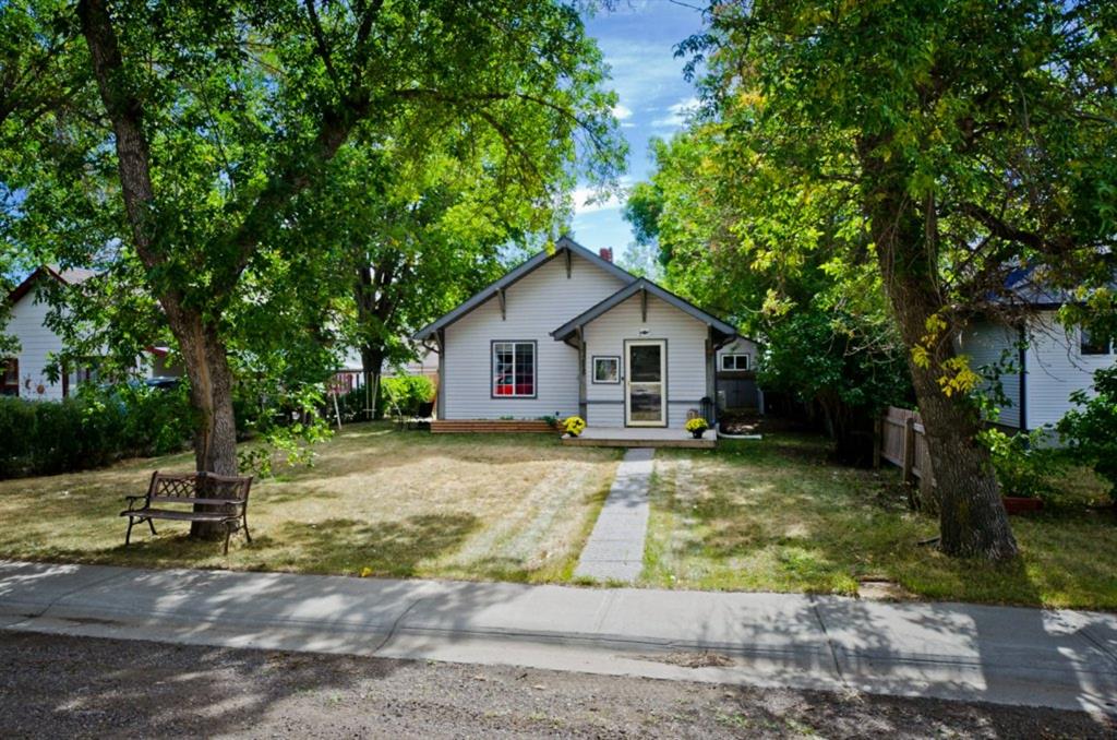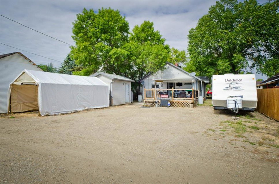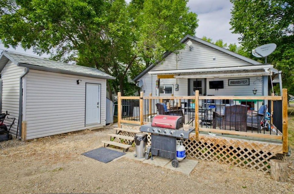 This is it! Renovated cozy 2 bedroom, 1 bathroom bungalow with loads of charm in the village of Rockyford, AB a short 20 minute drive from Strathmore, AB. or Drumheller. Situated on a beautiful tree lined street on large landscaped lot with spacious back yard complete with portable garage, storage shed, wood deck and has RV Parking and back alley access. Close to downtown. Kids go to the new Wheatland Crossing K-12 School!