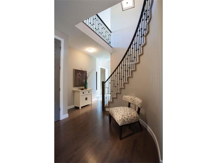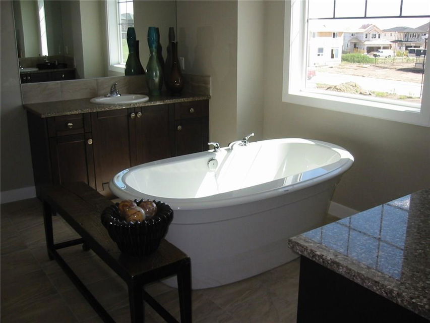 Showhome now available. “Ko Samuii 7” by Award Winning, Master Builder, Douglas Homes Ltd. Tiled front entry, front flex room/den, featured curved, oak/metal staircase. Hardwood floor from hallway, thru powder room, kitchen and dining area. Gorgeous island kitchen, with granite counter tops, wall oven, chimney hood/fan, countertop range, dishwasher, and fridge, and walk thru pantry to tiled mudroom. Feature 2 sided fireplace between dining area and great room. Patio door to deck with steps to rear yard. Upstairs includes a huge bonus room, 2 generous sized secondary bedrooms, 4pce bath. Huge master with w-i closet, with direct access to upstairs laundry. Absolutely gorgeous 5 pc ensuite with tile floor, including the stand alone soaker tub, 2 seperate vanities and sinks, with granite. W-i shower, privacy toilet area. The basement is unfinished, but the perimeter walls are framed, insulated, and vapor barriered, and inc. r-i-plumbing. TRIPLE ATT. GARAGE. Corner location.