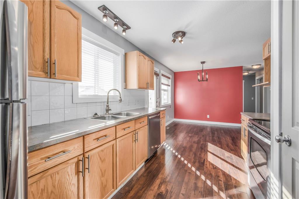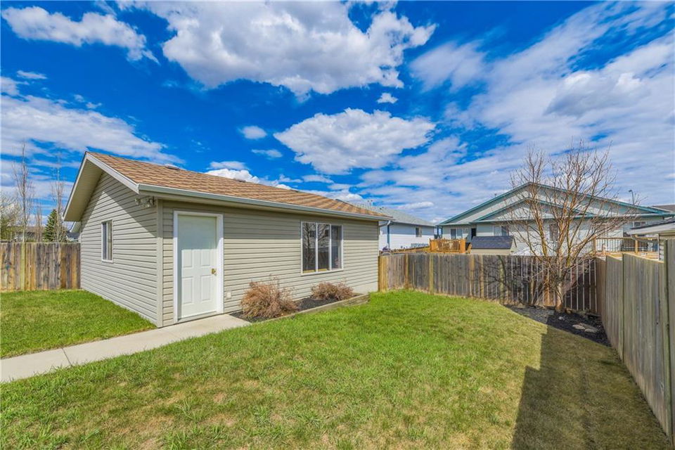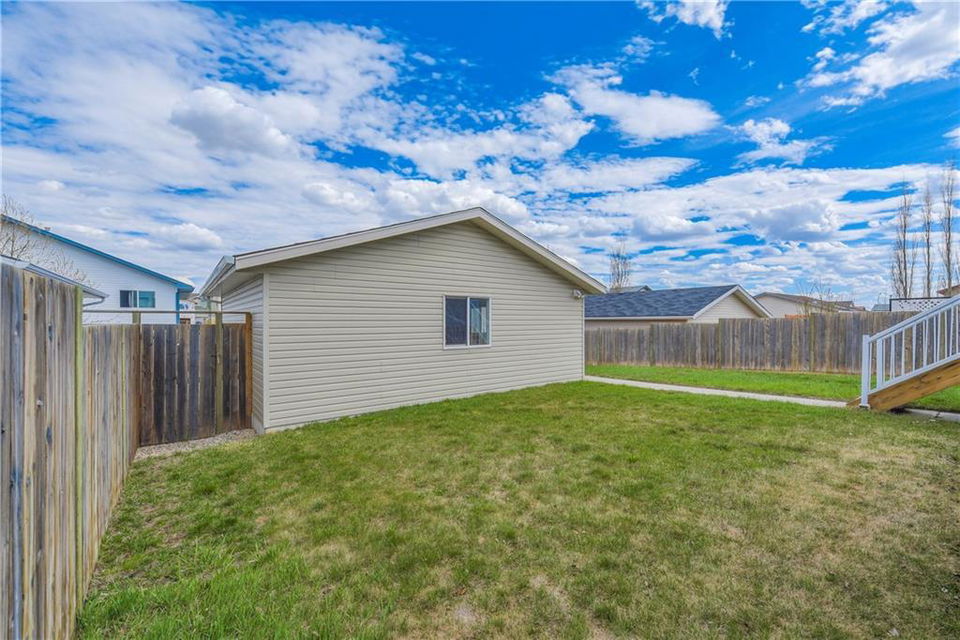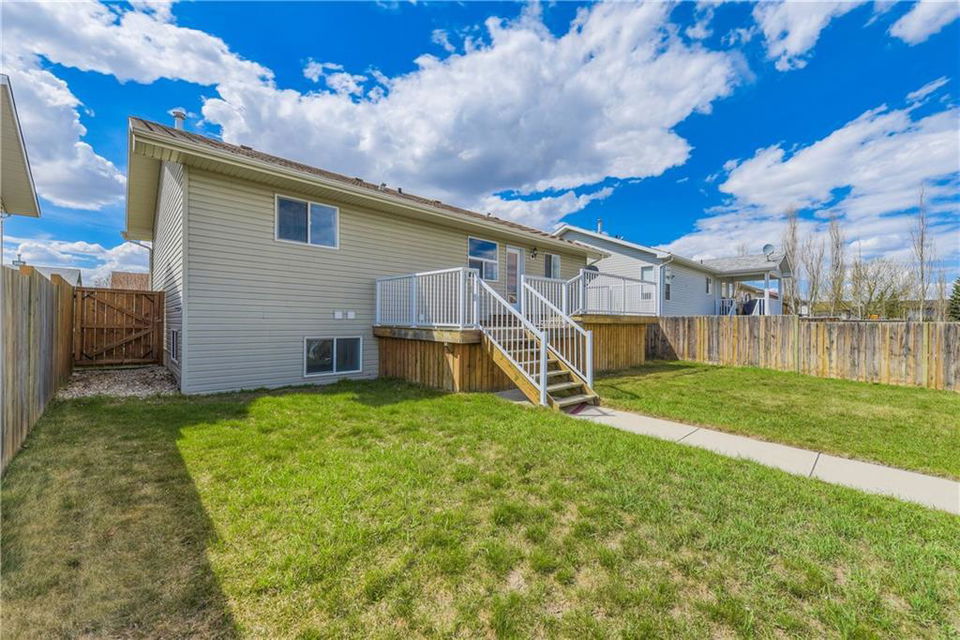 Well maintained and recently updated raised bungalow! Located in Strathaven of Strathmore. Situated on a large lot on a quiet close complete with fenced yard, tiered deck and 24’X24′ detached garage. The main floor consists of three bedrooms, full bath, living room with electric fireplace, galley kitchen with stainless steel appliances and dining area with access to the deck. Beautiful laminate floors, built in custom coat closet, new lighting,and more. The basement has a separate side entrance and is fully developed with a full bath, large bedroom, large family room, storage room and your laundry / utility room. Ready for mediate possession!