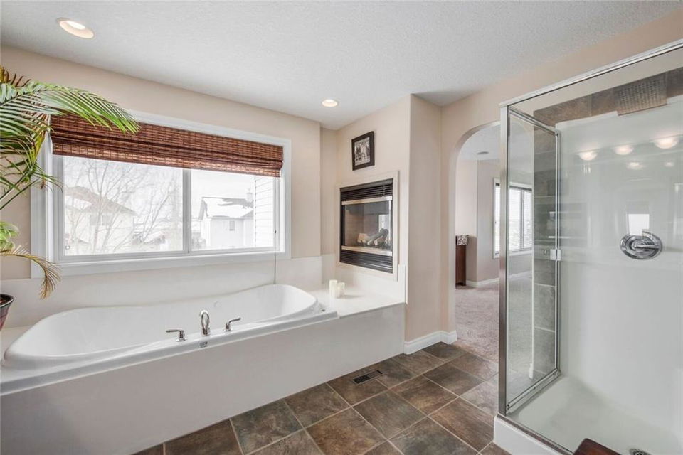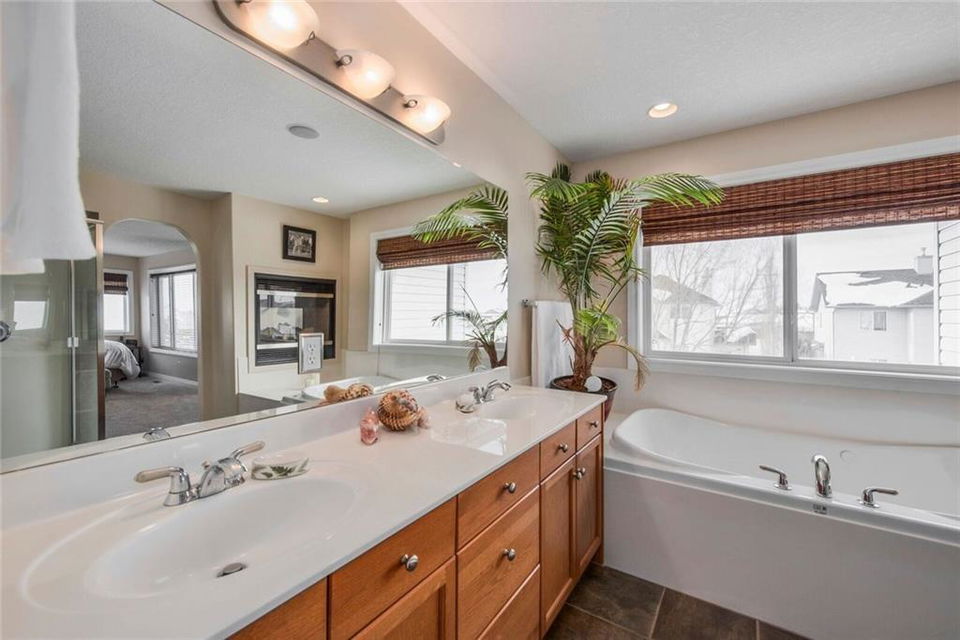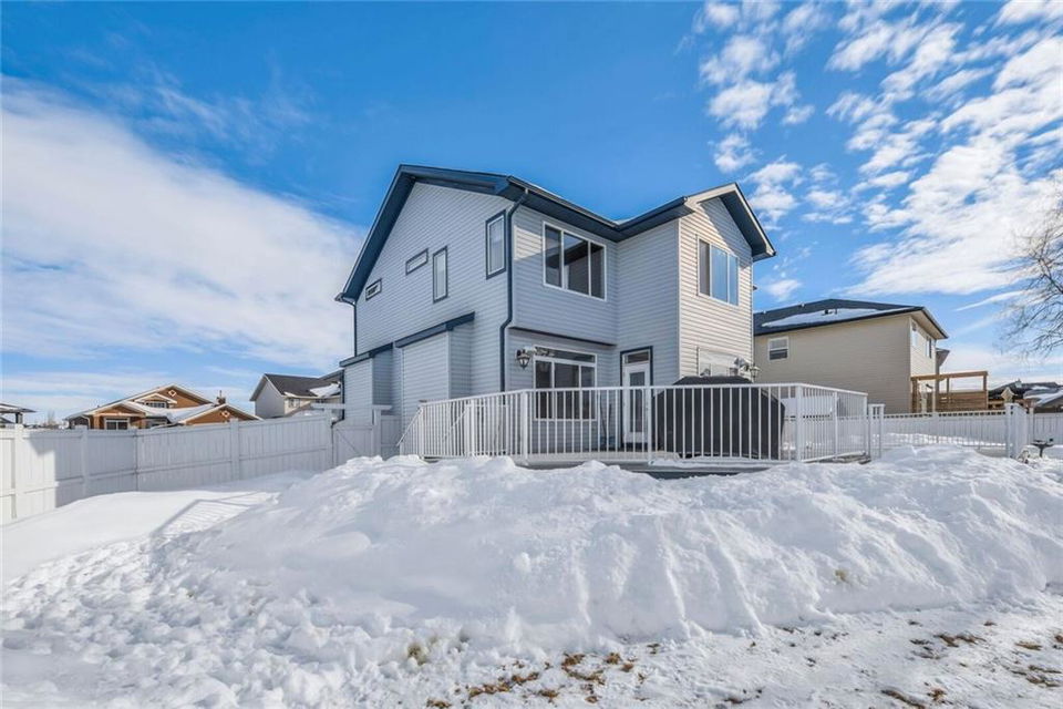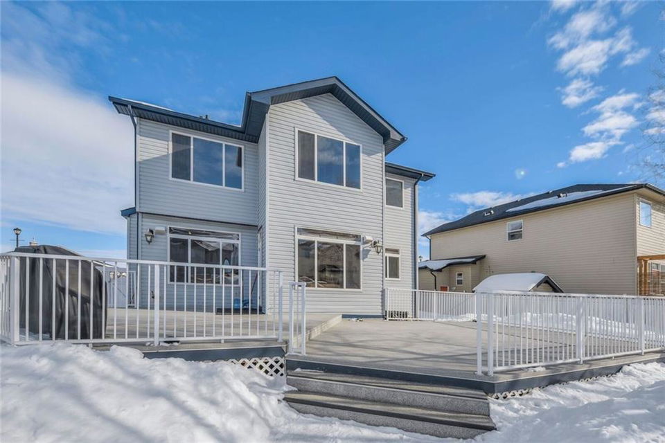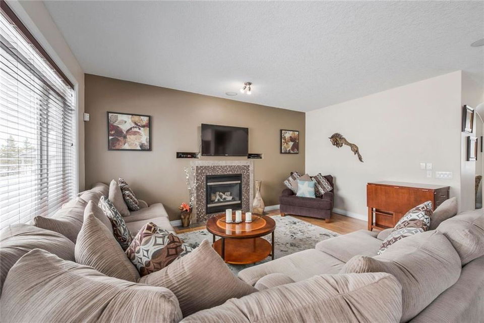 Welcome home to this immaculate fully finished 2 storey! Walking distance to 3 schools & beautifully kept. Enjoy your morning coffee on the large front porch. The main floor features wide open spaces & a beautiful kitchen, living area with a beautiful fireplace & eating area. The front room office is big & bright. The kitchen has plenty of cupboards, countertops & newer stainless steel appliances. A 2pc bath & great pantry complete the main level. The master bedroom is a great size with an amazing en suite with double sided fireplace and walk in closet. 2 more large bedrooms & 4 pc bath complete the upper level. The developed basement has lots of room for family fun, a bedroom, 4pc bath & wet bar & another fireplace! Outside you will find a fully landscaped, fully fenced yard & huge back deck for entertaining. The large corner lot has no sidewalks! Don’t miss you chance to own this beautiful home in a wonderful Chestermere Neighbourhood, close to walking paths & school. see remarks for more New furnace and shingles in 2015, carpets recently updated. The murphy bed in the second bedroom is included. The fireplace in the basement is electric. Hot water tank replaced in 2013. Large shed also included. This home is also wired for sound throughout