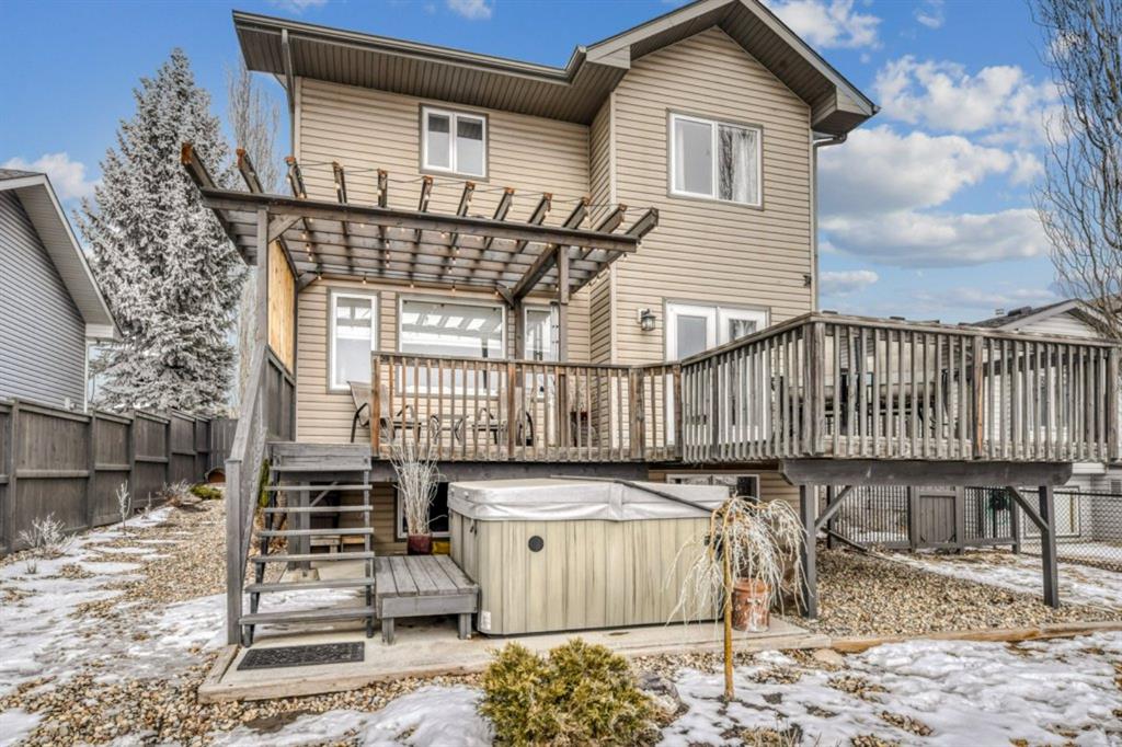 This home is a SHOW STOPPER! Extremely well maintained, neutral colors throughout, developed basement and a floor plan to fit any family. The main floor is seamless with open an open floor plan. The cozy living room has a corner gas fireplace and an abundance of sunshine through all the windows. Gleaming FRESH kitchen with breakfast eating bar, a walk thru pantry and stainless steel appliances,Newer backsplash, And freshly refinished cabinets All open to eating area and lots of natural light. Main floor laundry. The second level offers 3 bedrooms including the spacious owner’s suite with walk in closet and 3 piece ensuite. Fully finished lower level with large rec room, additional bedroom and bathroom and SUNSHINE windows Enjoy the views from your PRIVATE backyard overlooking the greenspace (ask lister for details ) Low maintenance landscaping, enjoy a quiet cup of coffee on your LARGE DECK, w newer Pergola and there is also a HOTTUB… perfect!