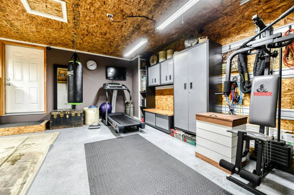 The roomy garage has some special details too inc a specially painted and sealed floor, it’s gas heated, and a Gladiator Storage system that is movable to other spaces in garage as needed- very practical. There is also extra parking for larger vehicles.