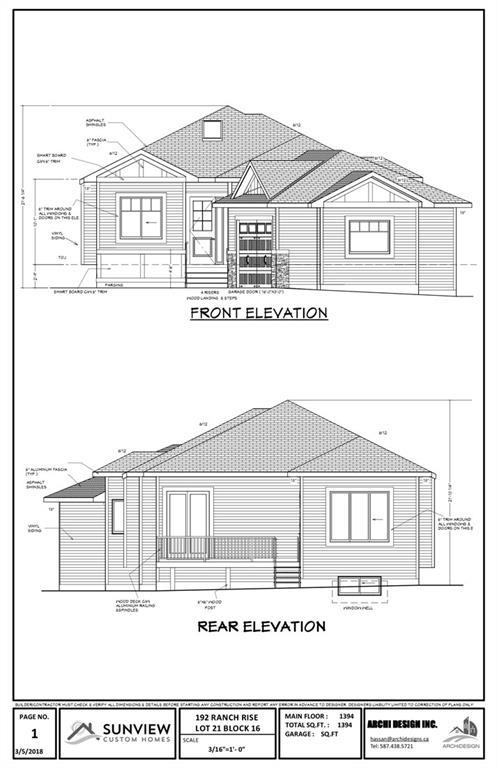 BRAND NEW home built by Sunview Custom Homes Ltd. You will LOVE the modern Kitchen with Island/Breakfast Bar, stunning Countertops, STAINLESS STEEL Appliances & Pantry. AND ITS A BUNGALOW- tucked into the corner of the culdesac ,being built with a sept possession planned. OPEN CONCEPT w high ceilings and hilites like GLEAMING Quartz countertops and Stainless appliances . If you would like to get a sense of SUNVIEW Homes great quality, please plan a visit. Call one of the listers and book a see the Showhome. The Ranch community is quickly becoming a popular family area. It is conveniently located to many ammenities inc playgrounds, schools , shopping
