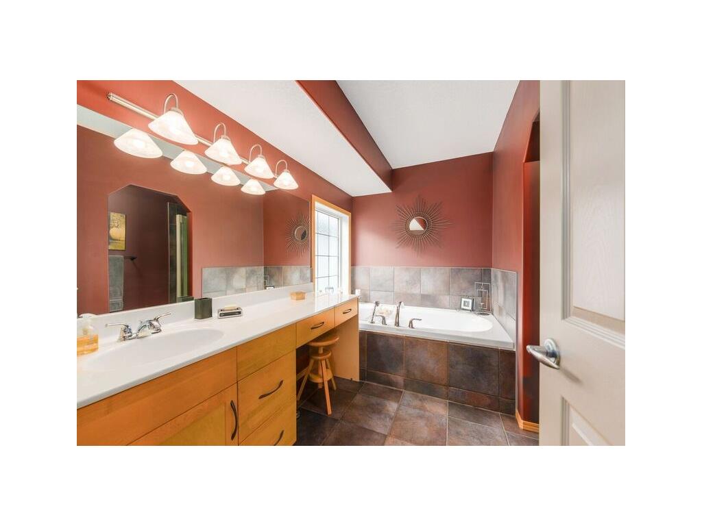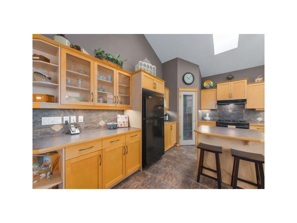 Pride of ownership lives here! This custom built home is both unique & beautiful. The front foyer is large and welcoming, there is a laundry room and garage access on this level, a few stairs up brings to you the main floor great room flooded with light from the over sized windows and kitchen skylight, highlighted by a triple sided fireplace & vaulted ceilings, the kitchen has plenty of cupboard & counter space. The dining area leads to an oversized second level deck with lots of room for entertaining. There is a bedroom and 4 pc bath on this level. A few more stairs up you will find a large master bedroom, with a large walk in closet and separate ensuite. The fully finished walk out basement has beautiful lighting, plenty of space, heated floors, a 3 pc bath and ample storage. Outdoors is an oasis to enjoy. A fully fenced yard gives plenty of privacy. There is room to park your boat on this large corner lot. 2631 developed square feet including walk out basement