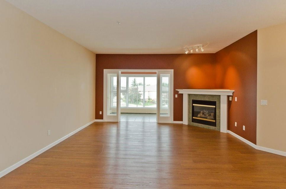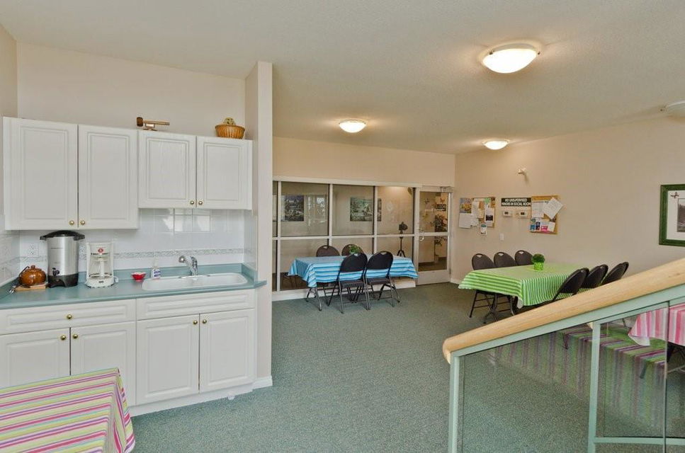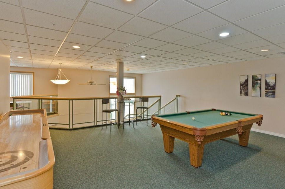Enjoy 30+ adult living in this spacious 2 bedroom plus den apartment with OVER 1300 sq ft. Bright and open floor plan with kitchen open to large living room with gas fireplace. Extra space in the sun room to enjoy the view. 2 large bedrooms, master with 4 piece ensuite. Insuite laundry and storage. Titled and secured underground parking. TONS of amenities offered in this well cared for complex. Games room, library and social room. Quiet grounds with gazebo and patio for hosting BBQs. Located on a quiet cul de sac. Lots of visitor parking. Condos fees cover a lot.
