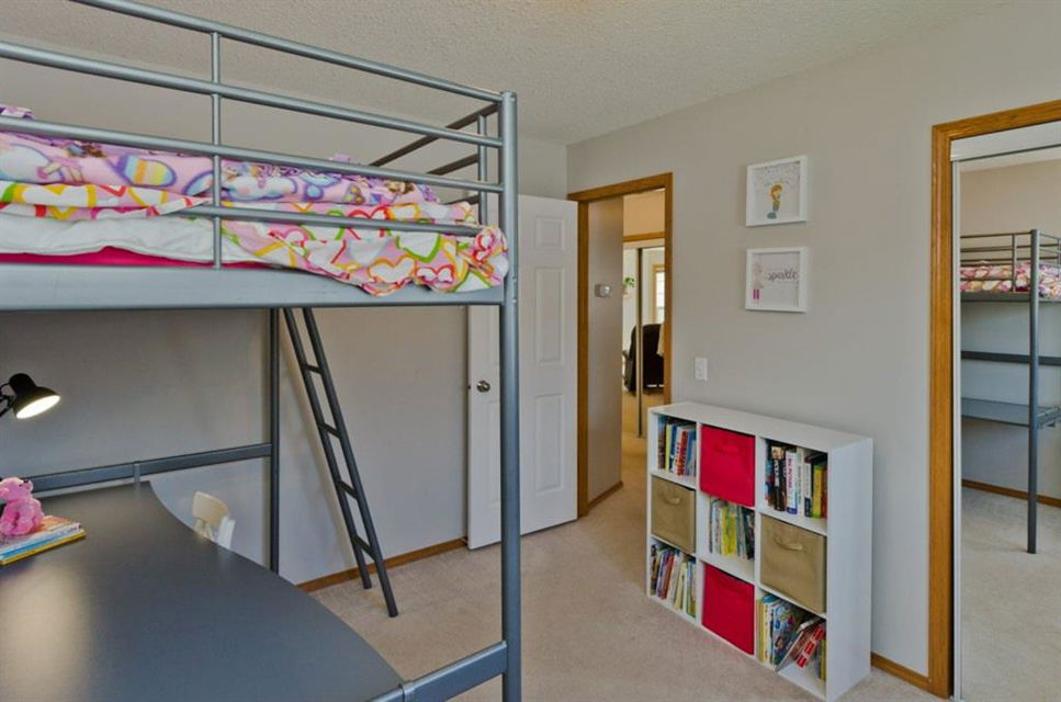 Exceptionally WELL maintained air conditioned bilevel with a total of 5 bedrooms. Spacious main floor, living room with gas FIREPLACE, dining room and big kitchen open to breakfast nook. Deck off of kitchen overlooking the private backyard. Master retreat with 4 piece ensuite, 2 more bedrooms and 4 piece bath. BRIGHT w LARGE WINDOWS in the FULLY developed lower level with large rec room, 2 additional bedrooms and 4 piece bath. A GREAT space for ANY family. TONs of STORAGE too . Large landscaped, quiet backyard. Drywalled, HEATED double attached garage. Great place to call home!