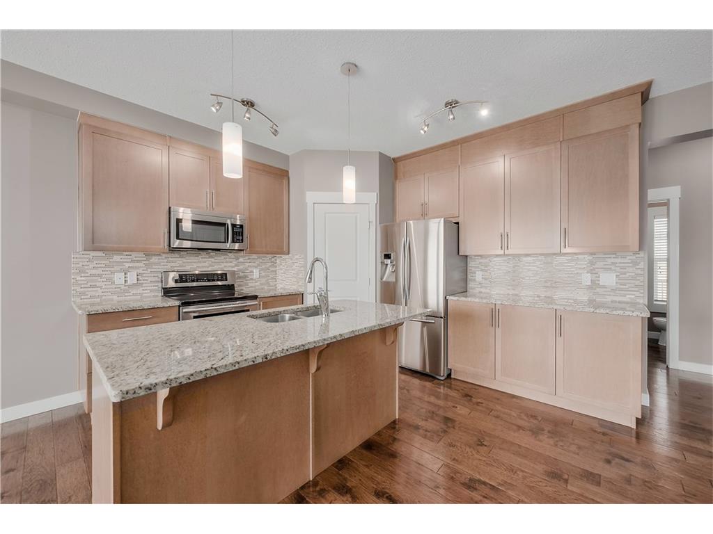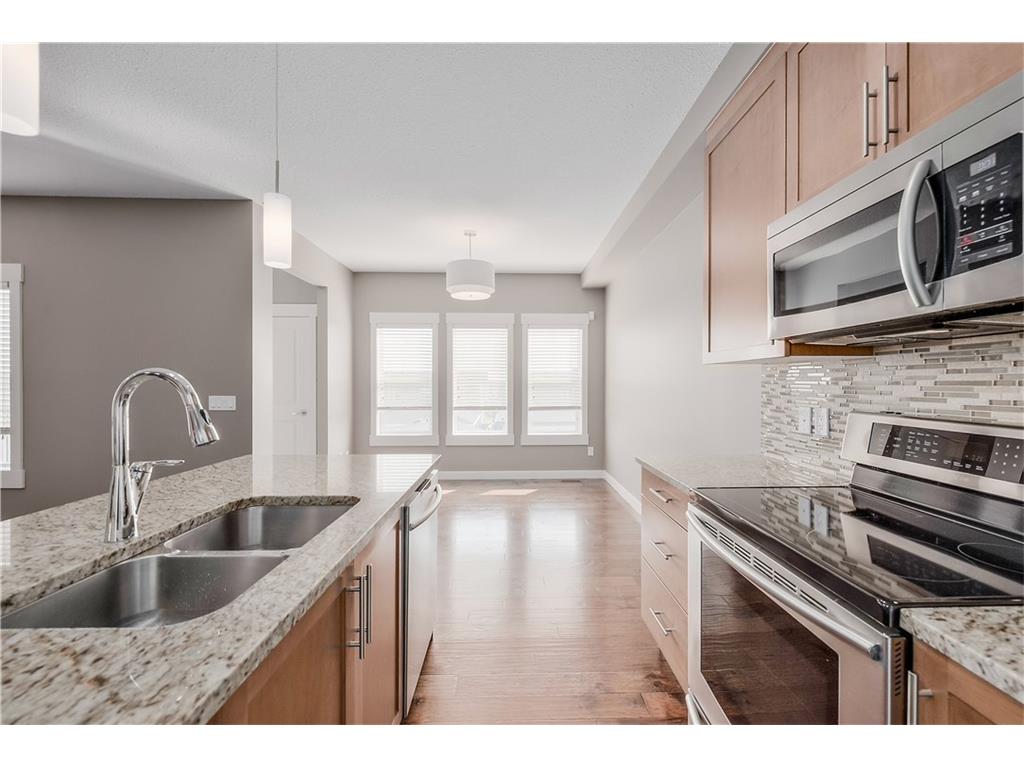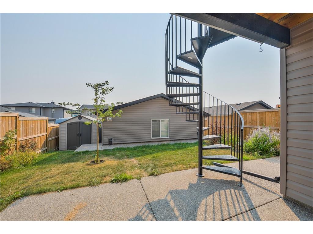 Welcome to Rainbow Falls! Looking for a immaculate 5 bedroom half duplex ready for immediate occupancy and a detached garage? Nothing spared here, all the upgrades and no neighbors across the street. The main floor is open concept with a spacious entrance, half bath, bedroom, eat in kitchen, living room with gas fireplace, and access to the deck. The upper floor is complete with bonus room, full bathroom, laundry closet, master bedroom with ensuite bath and walk in closet, and 2 more bedrooms. Fully developed walk out basement with 2 bedrooms, full bathroom, family room, laundry closet, and storage. Yard is fenced and landscaped with a storage shed.