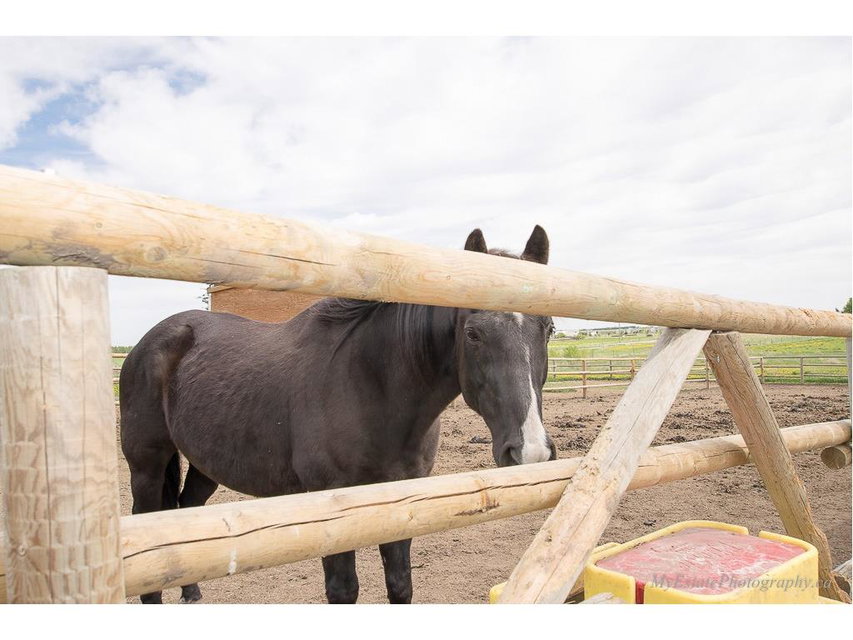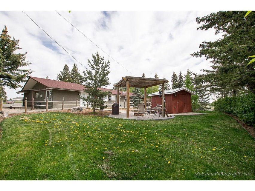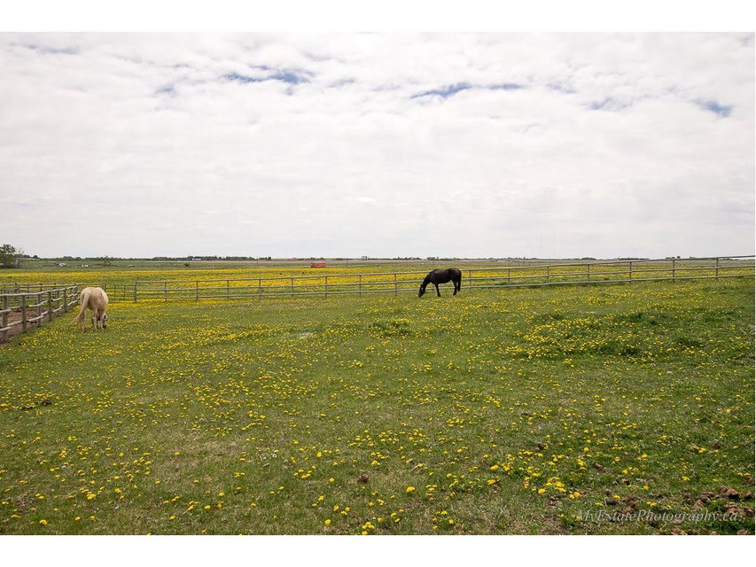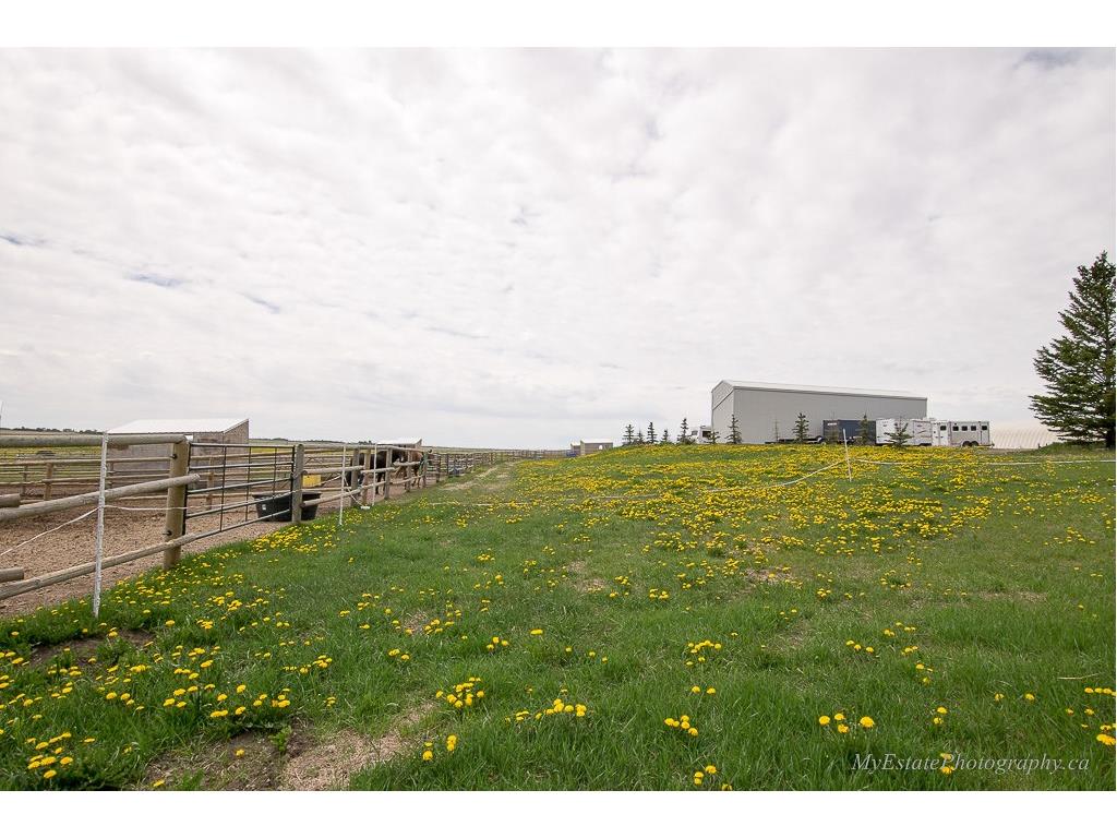 WELCOME HOME to Your TRANQUIL OASIS Just East of Calgary Between CHESTERMERE & STRATHMORE. 53 Acres with 1689 sq ft UPDATED 4 BDRM BUNGALOW with STAINLESS STEEL APPLIANCES. INCLUDES 24 x 24 HEATED ATTACHED GARAGE, 24 x 30 HEATED DETACHED GARAGE, 40 X 80 METAL CLAD BARN, FULLY INSULATED, RADIANT TUBE HEATER, 8 STALLS, 4 HAVE METAL GATES, TACK ROOM, 1/2 BATH, WASHER, DRYER, 11 PADDOCKS, 16 X 72 X 18 METAL HAY SHED, 195 X 95 SAND ARENA, 200 X 100 PAD, WOOD BARN & WOOD SHED. ASK ABOUT PERMITS TO BUILD INDOOR ARENA. 40 ACRES OF HAY will Produce 3200-4800 BALES. FULLY FENCED, RECYCLED ASPHALT DRIVEWAY, SEPTIC SYSTEM FOR HOME & ANOTHER FOR THE BARN are 1.5 years old. FURNACE INSPECTED & SERVICED LATE 2016, HOT WATER TANK – APRIL 2012, R/O WATER SYSTEM. NO WATER ISSUES AT ALL. SHINGLES ON HOUSE, ATTACHED & DETACHED GARAGE in 2016. ENJOY YOUR SOUTH FACING BACK YARD WITH NEWLY EXTENDED DECK, LANDSCAPING, w/ 2 GAS LINES, FIRE PIT, POND, 2 PERGOLAS. WELCOME HOME TO YOUR LITTLE PIECE HEAVEN!