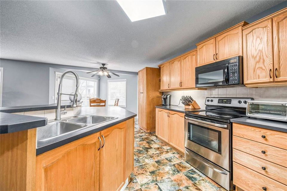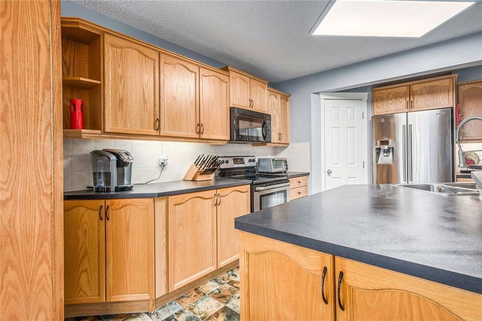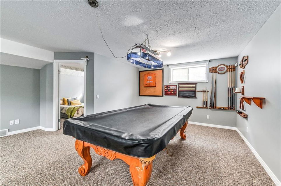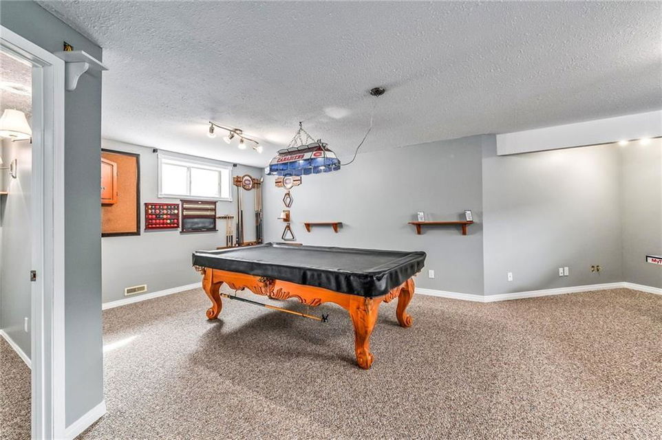 Play centre & sand box included. Fruit trees include raspberries, Saskatoons, strawberries & apple tree. Hot tub as is (needs electrical) . Media room speakers not included. Storage shelving in basement included. Water softener negotiable. Pool table & accessories & ping pong table negotiable. Hot & cold water & utility sink in garage. Wall mounted pressure washer & all shelving (except white cabinets) stay. Stove & dishwasher less than a year old.
