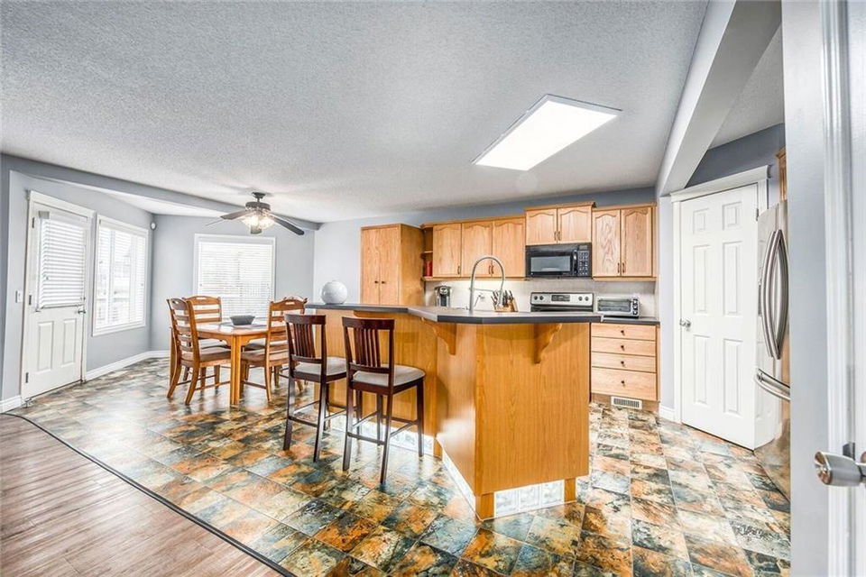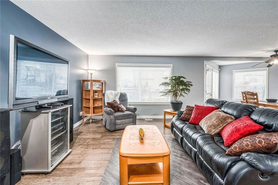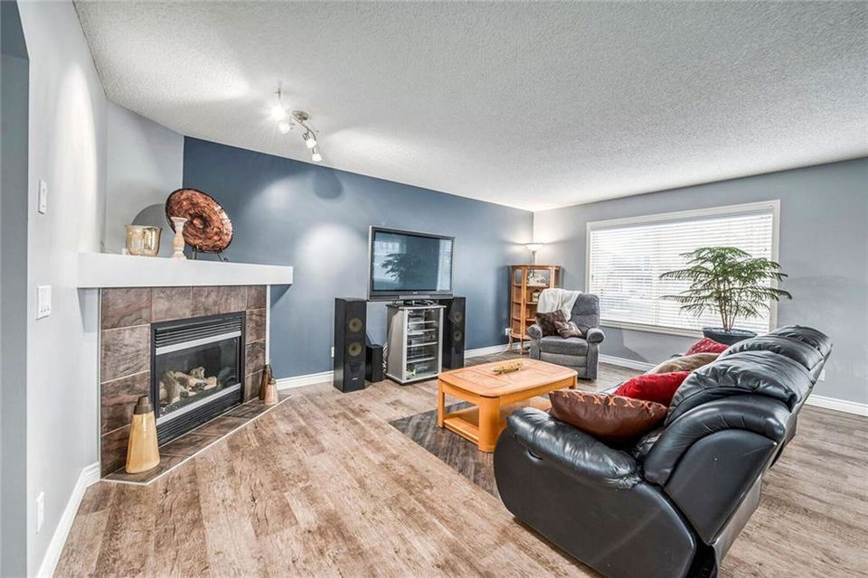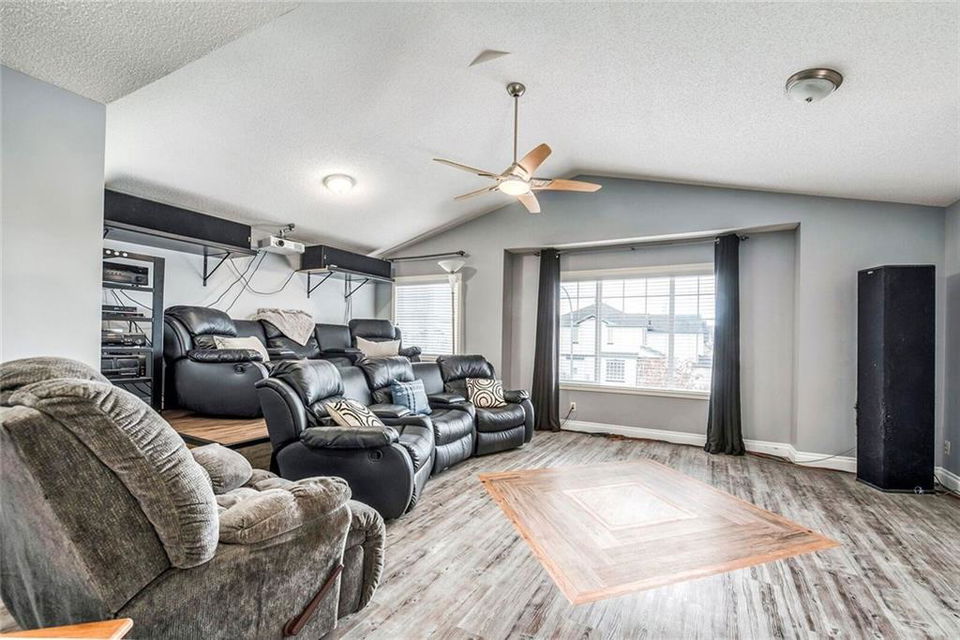 This one checks all the boxes! Spacious 2 story located close to SCHOOLS, PARKS & PATHWAYS. 3300 square feet of developed space. Enjoy your morning coffee on the cozy FRONT PORCH. Front flex room would make a perfect den, playroom or dining room. The living room, kitchen & eating area are OPEN CONCEPT allows the whole family to be together. 3 bedrooms up including master, ensuite & large walk in closet. The real BONUS is the MEDIA ROOM with vaulted ceilings, 2-tiered theatre style seating & projector screen. Family & friends will love your MOVIE NIGHTS!! New LUXURY vinyl plank flooring is both beautiful & durable. The FULLY FINISHED basement is another great spot to hang out or entertain & includes a 4th bedroom, bath, big windows & wiring for surround sound. The mature yard has a variety of fruit trees, wood fireplace, hot tub, 12’ x 14’ shed, dog run/under deck shelter & back lane access with double gates to park your boat or small RV. A HEATED TRIPLE CAR garage rounds out this super functional home.