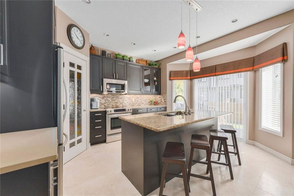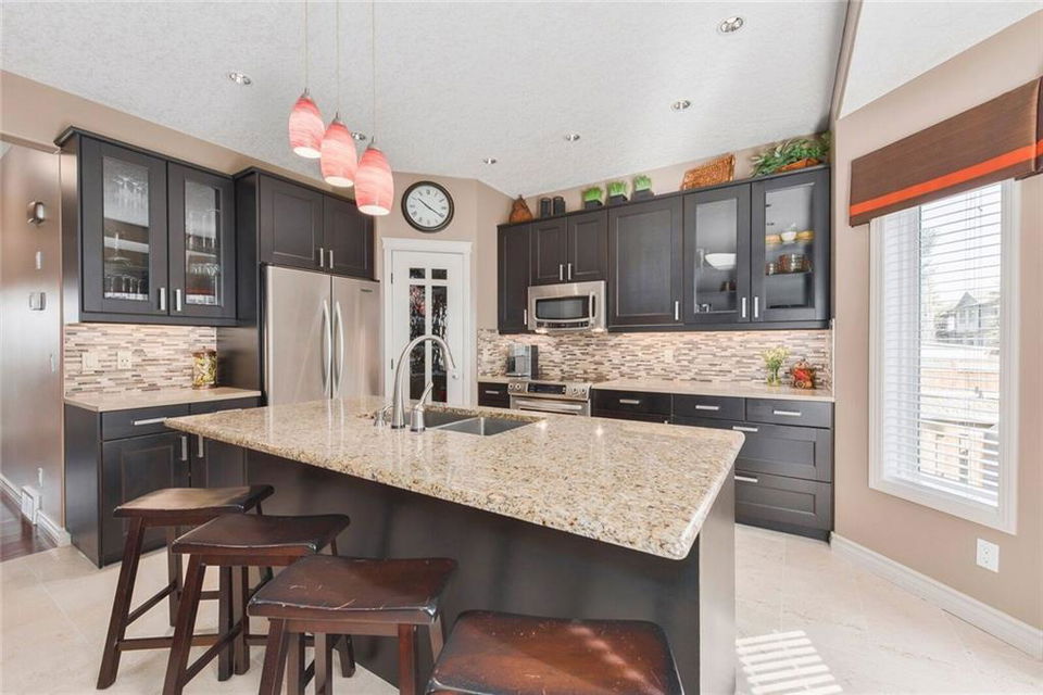 This fabulous family home starts with a welcoming front porch. Pride of ownership lives here! Walk through the double doors into the formal living & dining room complete with vaulted ceiling & large windows. The completely renovated kitchen has a large island & beautiful modern finishes. It is open to the cozy family room with tiled gas fireplace. Easy access to the great backyard with deck from here. The main floor also has a private office, laundry room & updated powder room. Upstairs are 3 good sized bedroom including the master with large ensuite and his & hers closets. There is also a loft style bonus room with a gas fireplace. The basement is fully finished with a beautiful wet bar, 4th bedroom, a bathroom & a flex room that can be used as a home gym, playroom, office or craft room. The double attached garage is drywalled & insulated AND has a staircase that provides direct access to the basement. Ideal for a separate living space! This one isn’t going to last!! School and shopping close by!