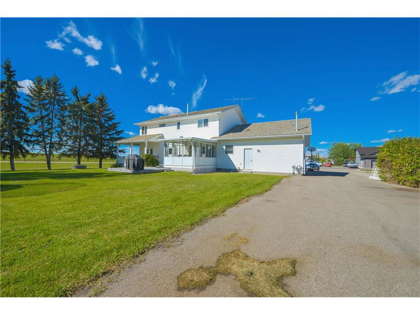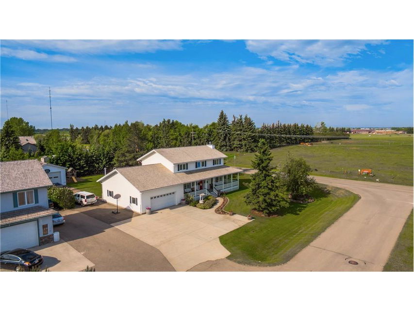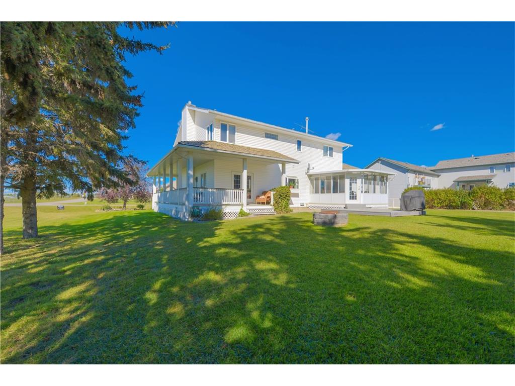 Seller will consider TRADES(buying your home)! Own one of Strathmore’s most recognized properties! Situated in Wildflower Estates on a treed 1/2 acre lot. This beautiful Colonial Style fully developed 2 story home with wrap around deck and 3 season sun room is complete with attached garage and detached shop. Will suit those with a large family, and those with a home based business. One of a kind!