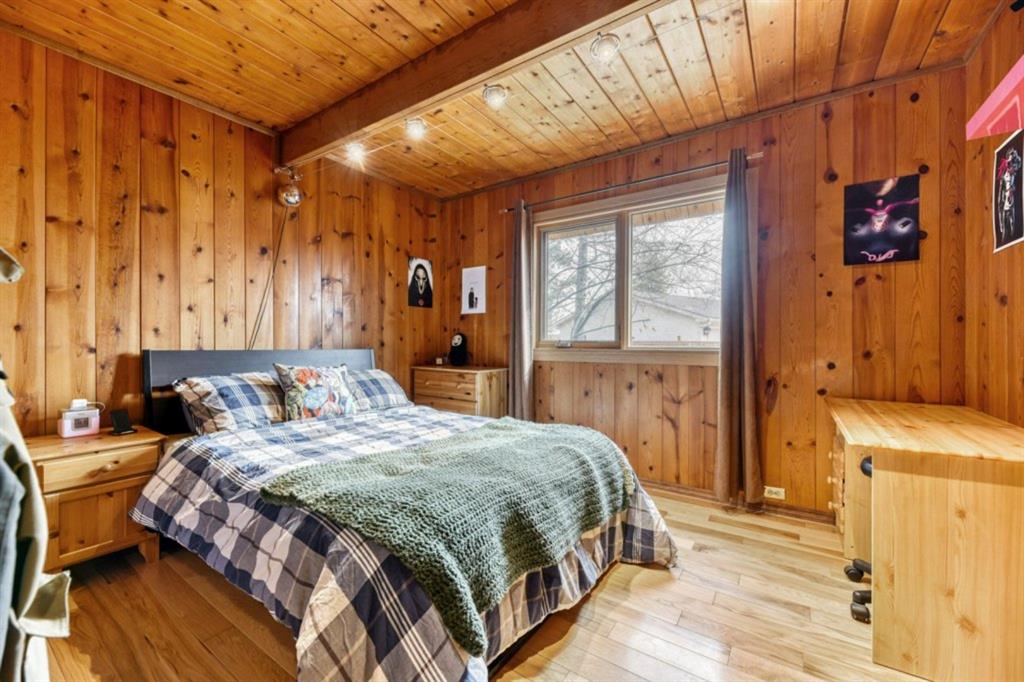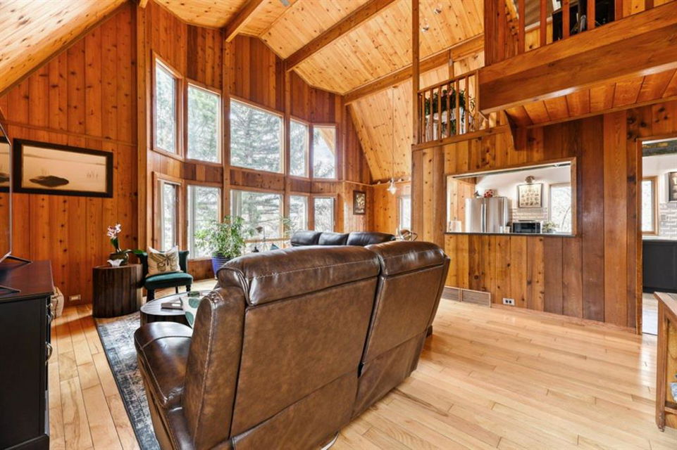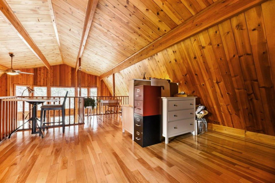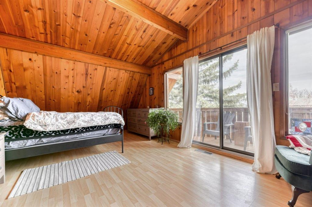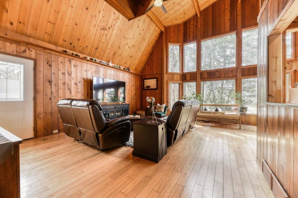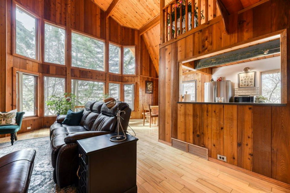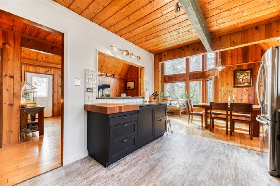 Unique BEAUTIFUL cedar home situated on a very LARGE pie shaped lot w GORGEOUS mature landscaping and trees! Lots of sunlight through this home with big windows and soaring vaulted ceilings. You will love the NEW kitchen overlooking the expansive deck and sideyard.