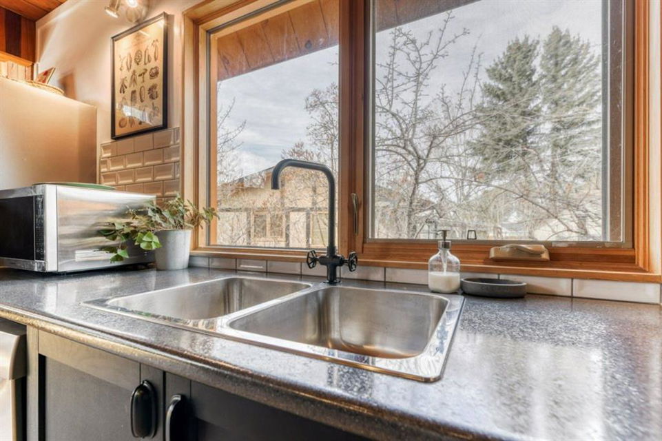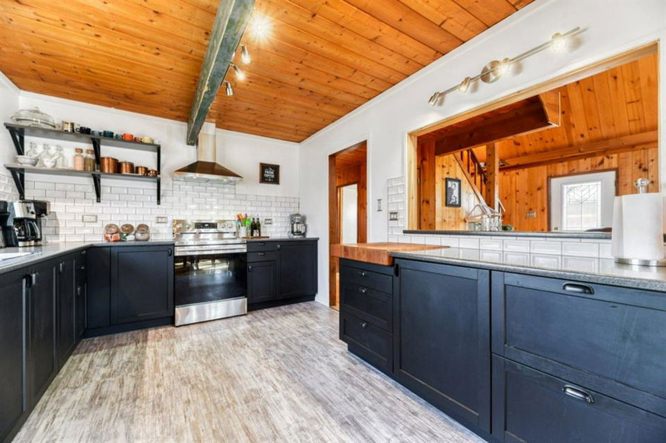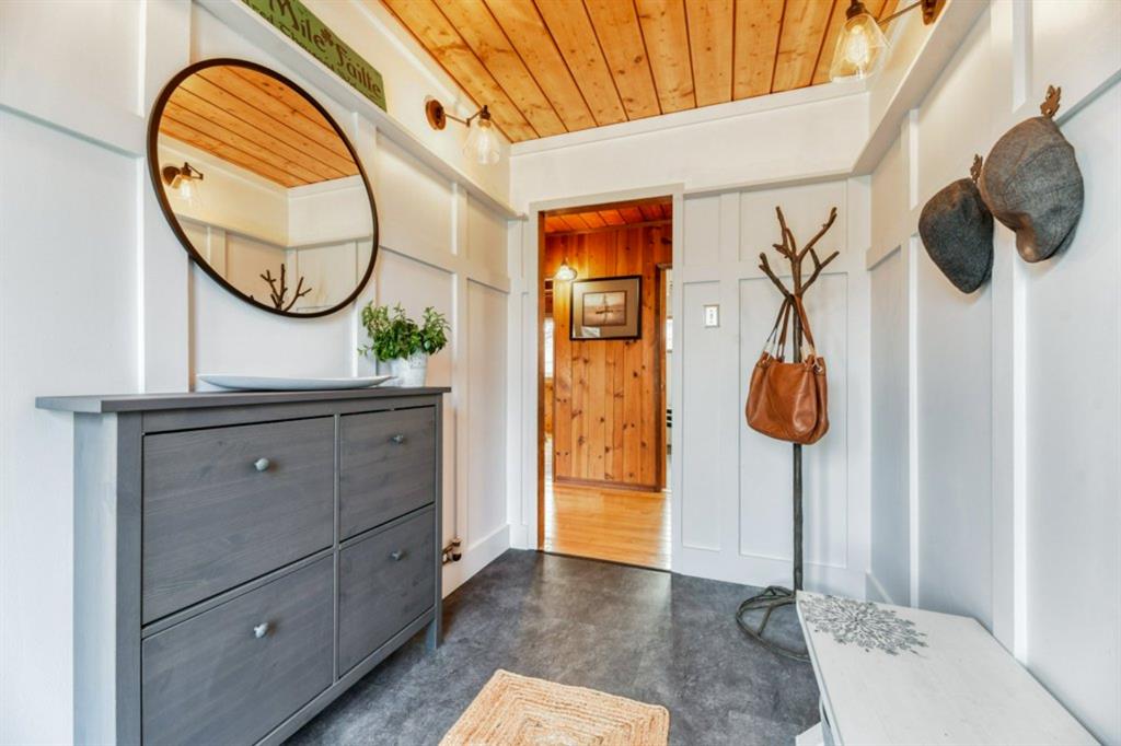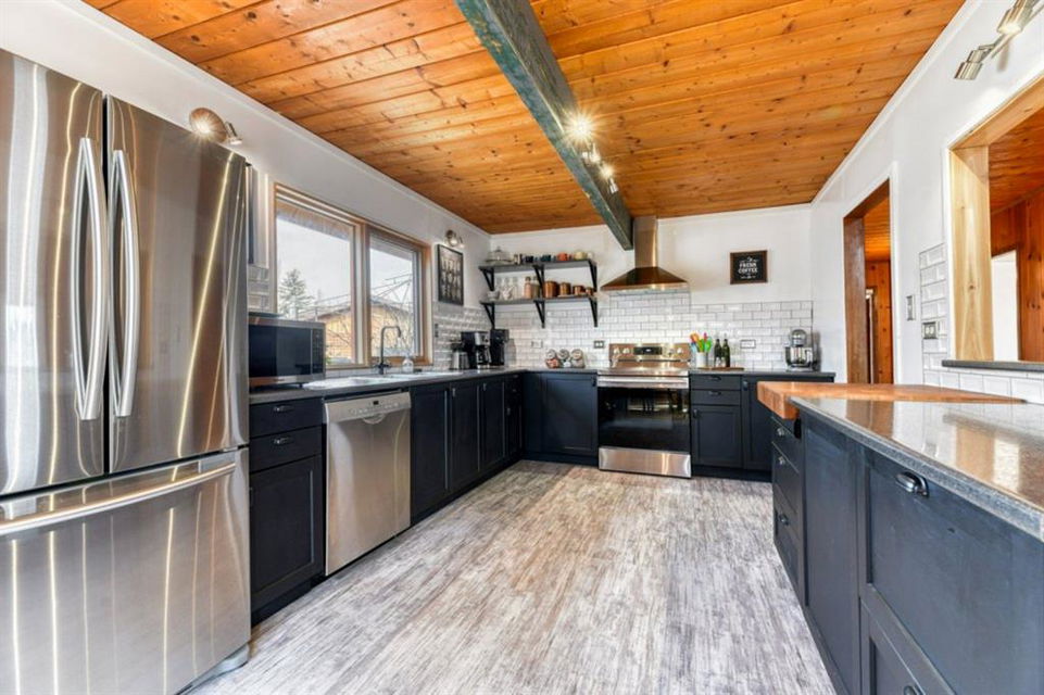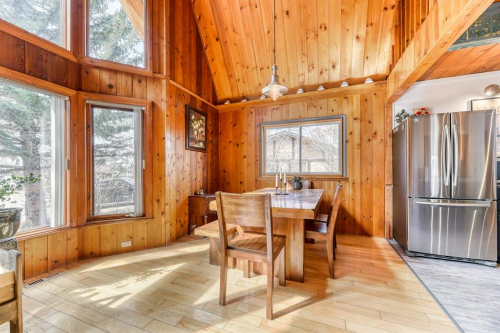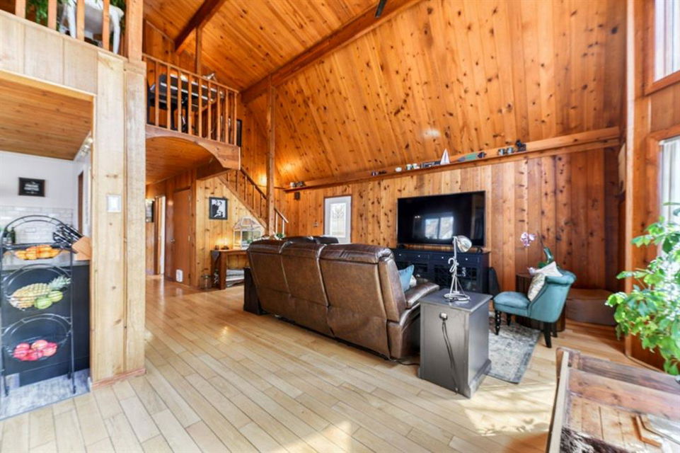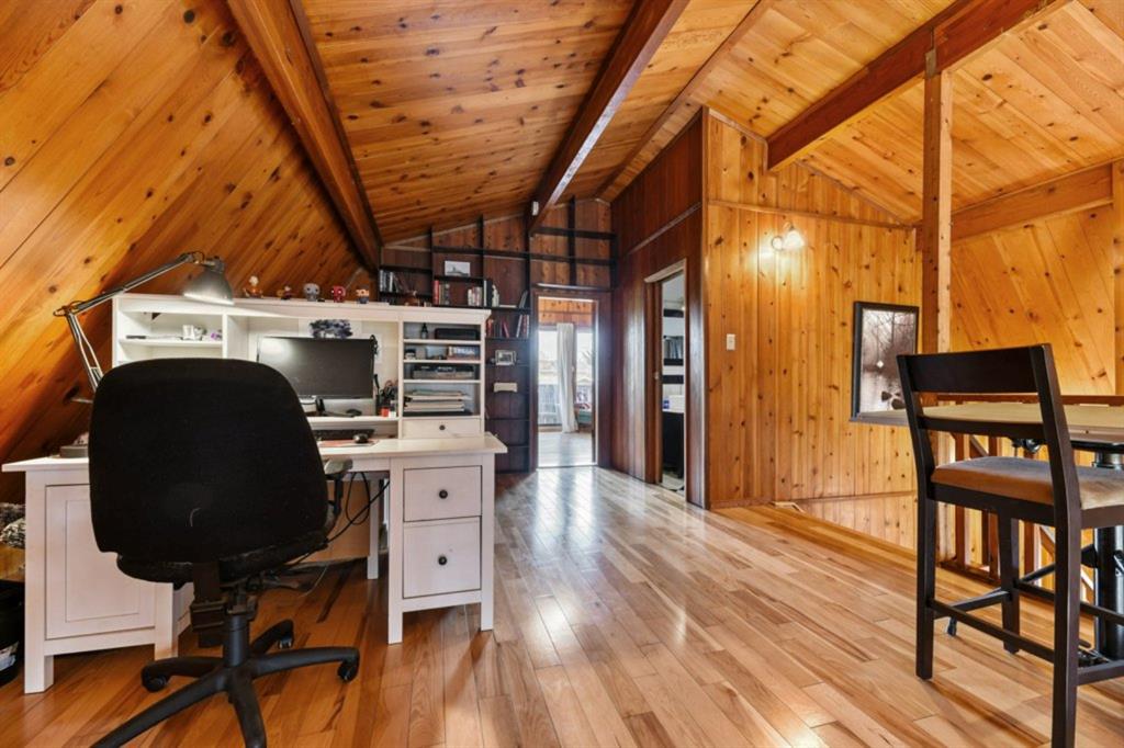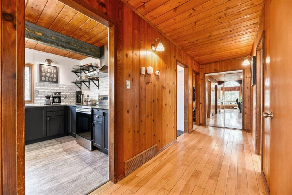 Unique BEAUTIFUL cedar home situated on a very LARGE pie shaped lot w GORGEOUS mature landscaping and trees! Lots of sunlight through this home with big windows and soaring vaulted ceilings. You will love the NEW kitchen overlooking the expansive deck and sideyard.