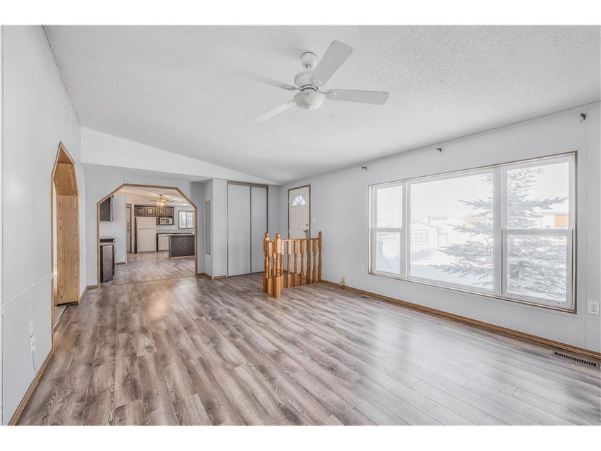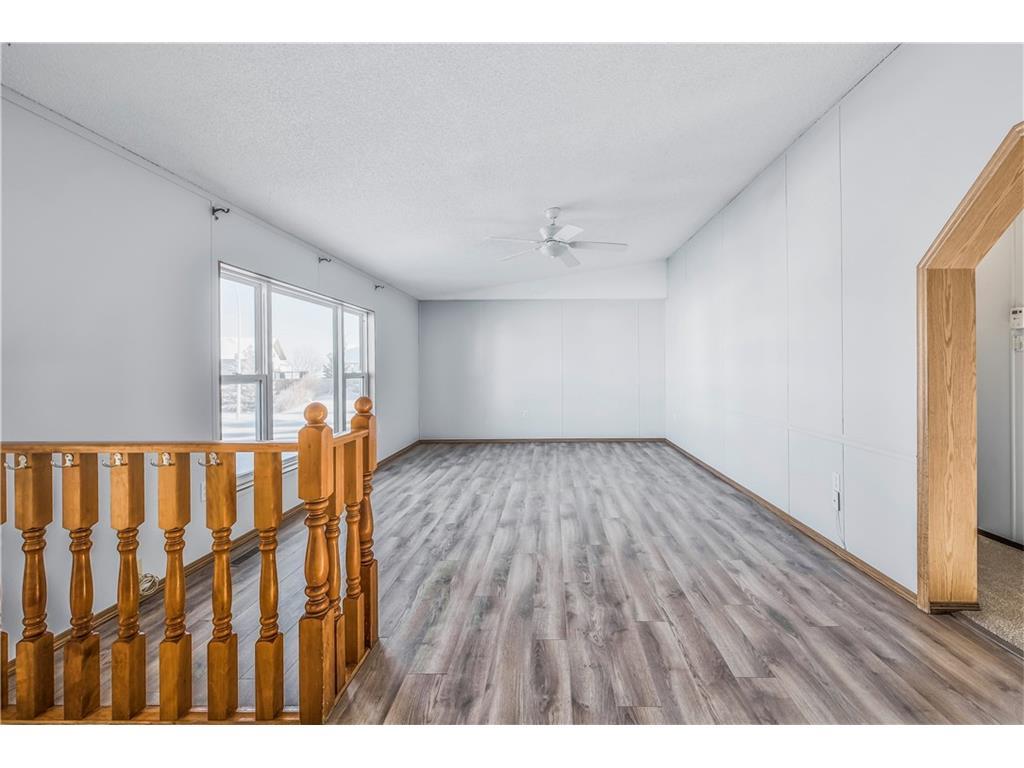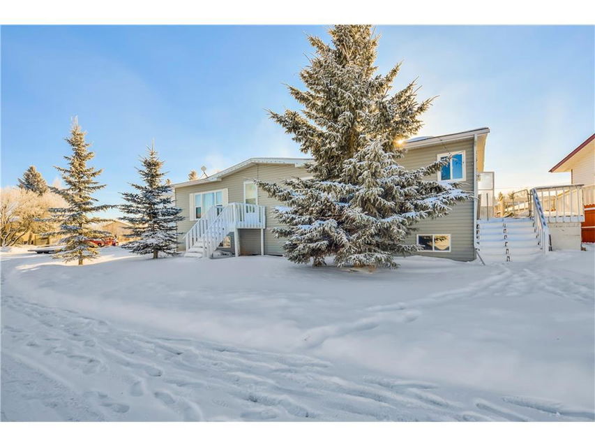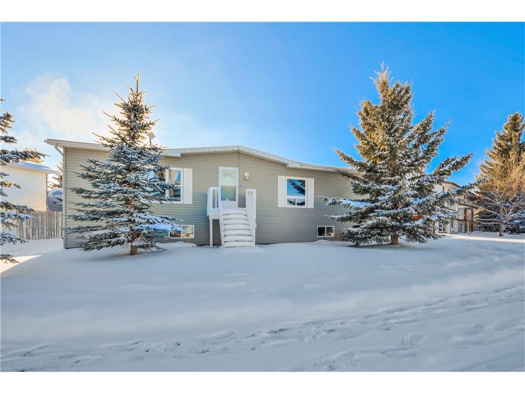 Are you looking for small town living with easy access to both the City & Strathmore? Look no further! This home is ready for new owners- fresh paint & new carpet welcomes you into this spacious home. There are 2 bedrooms plus a master complete with an ensuite. The open concept Kitchen & family room has a vaulted ceiling & there is tonnes of light. The basement is partially finished with 2 more bedrooms, a huge family room complete with a theatre space, laminate floors. The corner lot is fenced and has a detached oversize garage. Bring the toys, and the fishing gear with how close you are the Bow River and Wyndham Park you will have lots to do on the weekends and summer evenings!