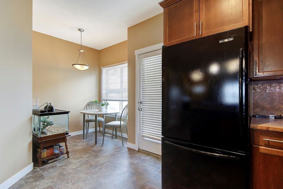 A great home ready for you. This is a 3 bedr townhouse in the Ranch area. Open concept home and the kitchen has dark cupboards, a raised eating bar as well as a nook for your dining table and a patio off the kitchen. Your patio area and green space has room for your BBQ and room to relax in the sun. There is a 1/2 bath on the main floor and a full bath on the upper floor. In the basement, the seller has the area 80% complete, with a den/guest room, a recreation room and a 3pce bath just started. Seller will leave behind any of the building materials that is there.