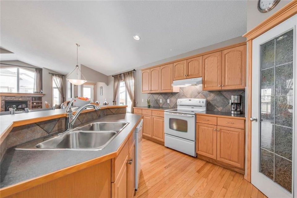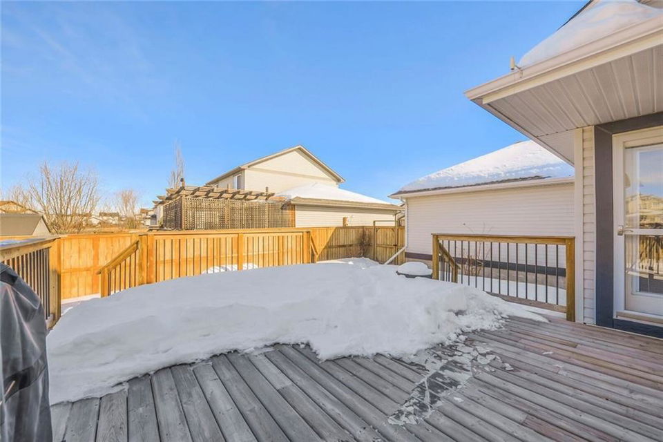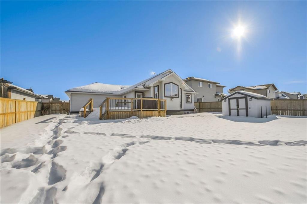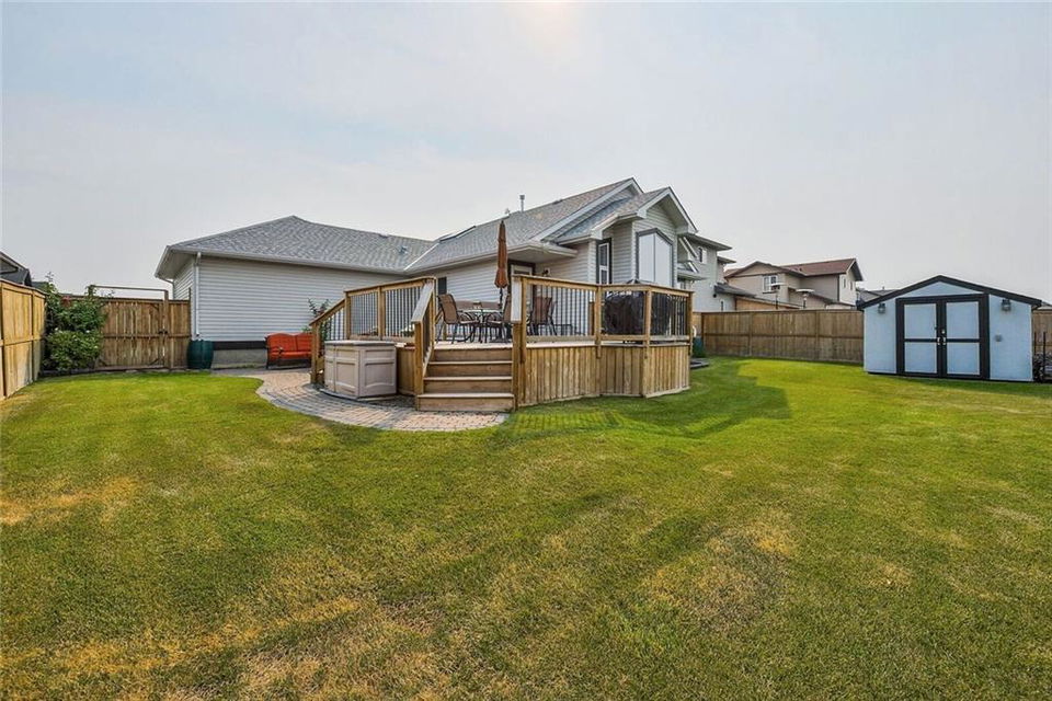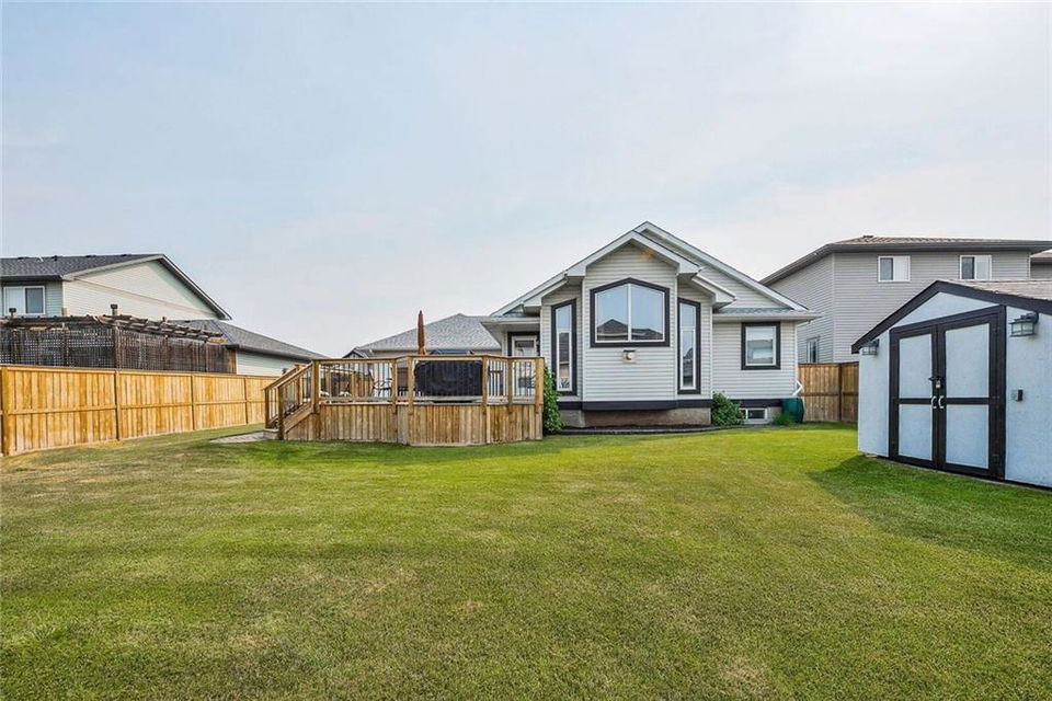 Find your OASIS in Langdon – a mere 20 minutes East of Calgary. First time offered for resale this FULLY FINISHED bungalow is move in ready. Let the open floor plan welcome you. The front office is perfect for a home-based business. The great room has VAULTED ceilings, a beautiful fireplace & the kitchen has plenty of cupboard & counter space. The master bedroom is a GREAT size with an ensuite, walk in closet & vaulted ceilings. The basement is open with lots of light! There is a good sized living area, 2 more bedrooms & a cheater suite bath. The storage is over-sized with heavy duty shelving to store even your bulkiest items. The MASSIVE yard is fully fenced & professionally landscaped & has been meticulously maintained. It includes a shed with electric, 10 zone underground sprinkler (front & back) & some great entertaining space including fire pit, patio & a large deck – all professionally installed & permitted. Just move in & ENJOY this inviting home close to K-9 schools, shopping, restaurants & golf. Metal shelving unit in garage stays. Sound surround in basement, Top end shingles, Heat shield windows. Professional landscaped with 10 zone underground sprinkler system. Garage has gas hook up roughed in. Kitchen has gas hook up roughed in. surround sound area – wall re inforced in rec to have tv bracket mounted. Basement has cheater en suite solid hardwood floors and wood features hand crafted on site. nu vista built. original owners. storage room shelving storage attached to wall. shed has electricity – all permitted and inspected. Re inforced pillars in deck – fully permitted. 10 x 10 shed – has electric. basement finished by builder.
