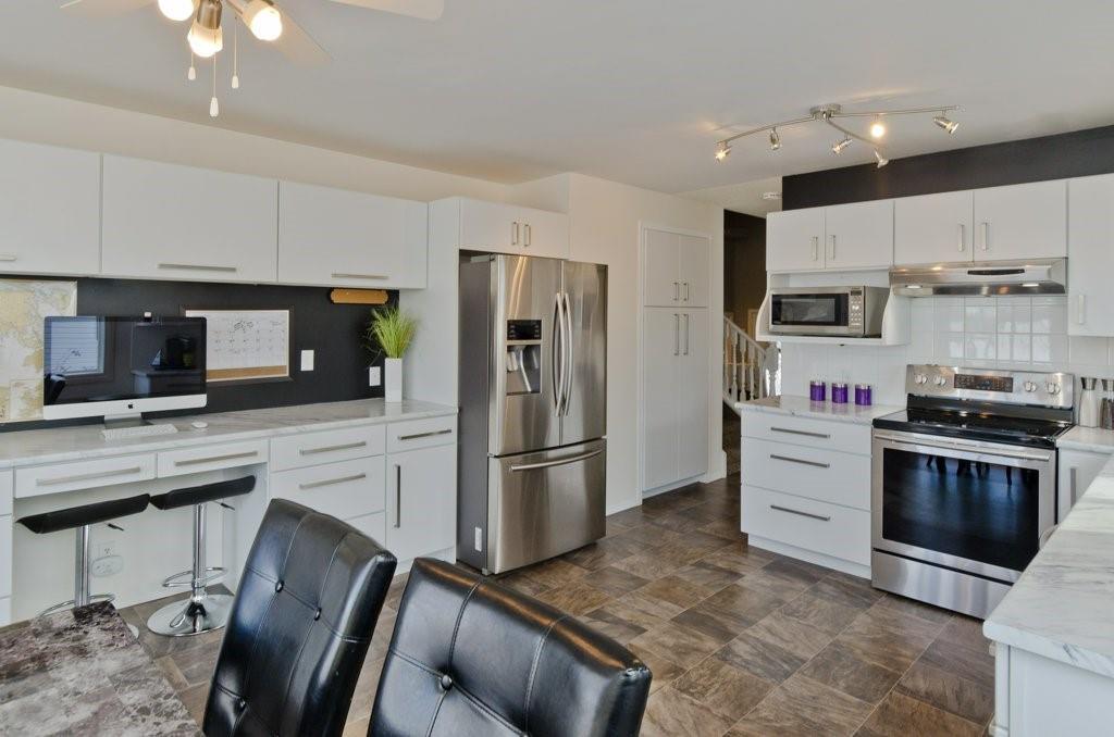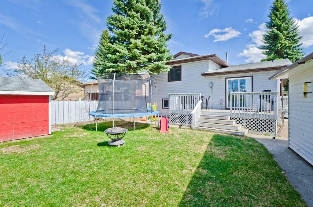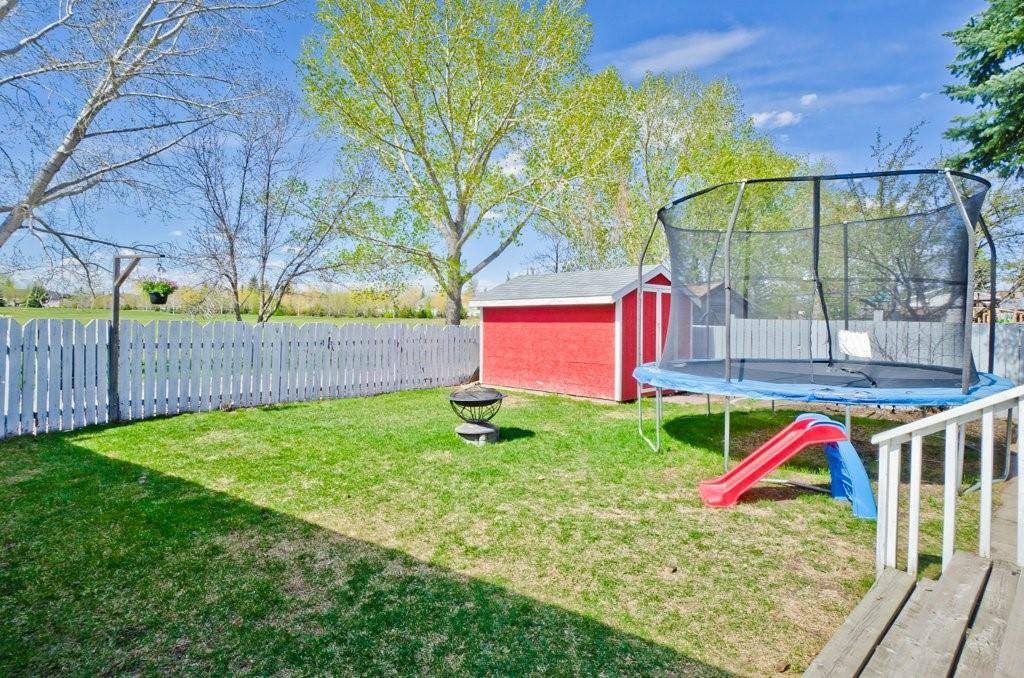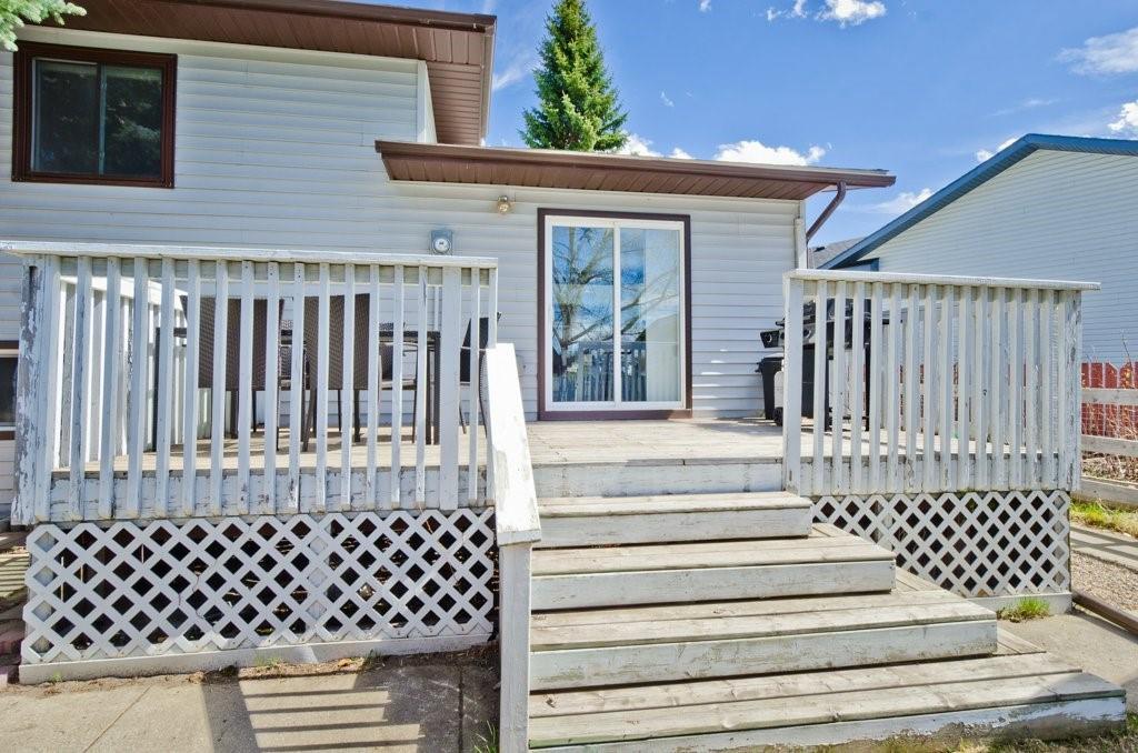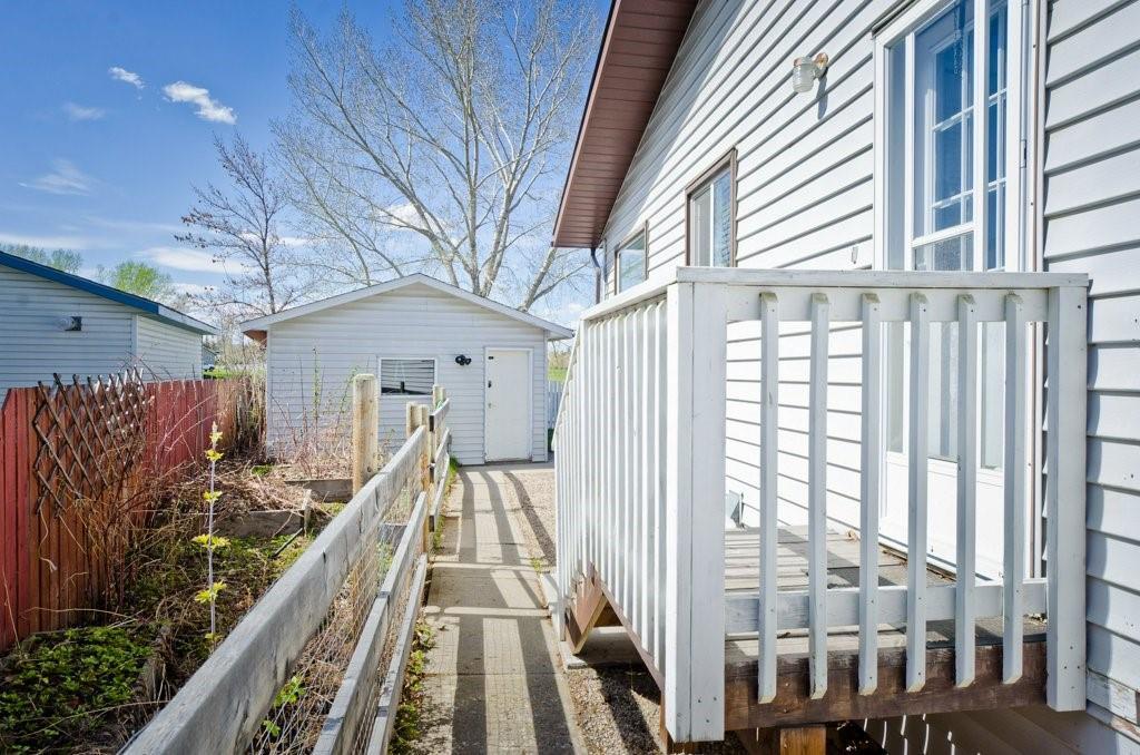 Seller Motivated! Beautiful modern and renovated 4 level split with over 2200 sqft of living space backing onto a large park and centrally located and walk-able in Strathmore. Upon entry to the home you will find a large tiled foyer, large living room with bay window and plush new carpet. Spacious eat in kitchen boasting many newer white cabinets with upper pull up cabinets, two pantries, self closing drawers, computer area in custom built in and plenty of room for your large table. Upper floor has all new carpet and 3 bedrooms, 2 piece ensuite and full bathroom. Master bedroom will accommodate a full king suite, plus you’ll love the large walk in closet. Third level has all new carpet and a family room, den area, laundry room, 4th bedroom and another bathroom. The basement is currently used as a home gym. Back yard is fenced and complete with mature landscaping, deck, shed, and 16’x24′ garage along with back alley access. Quality built home ready for a new family…