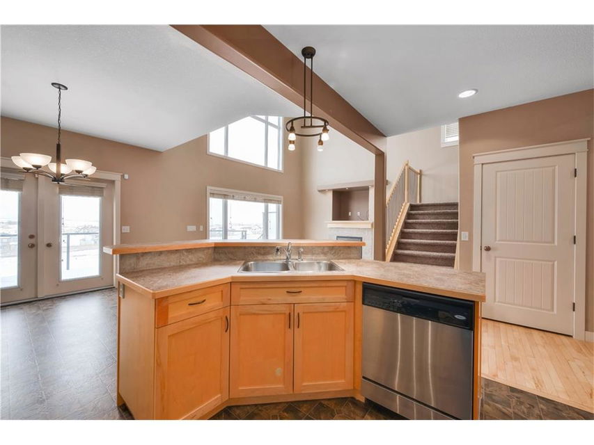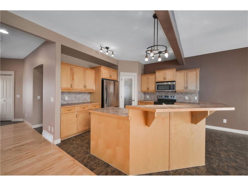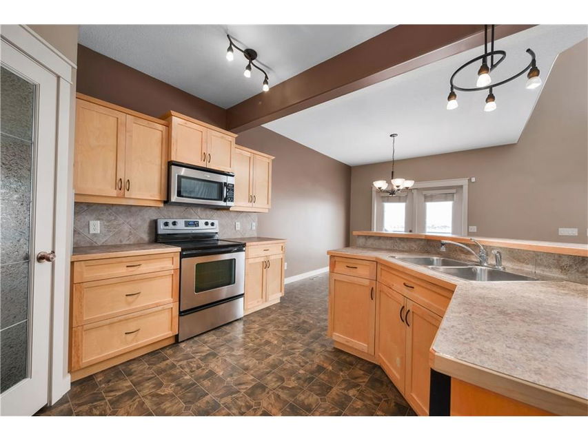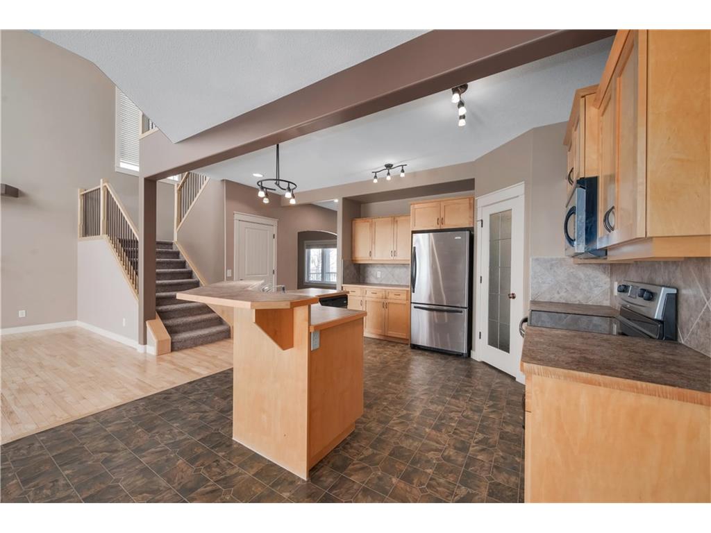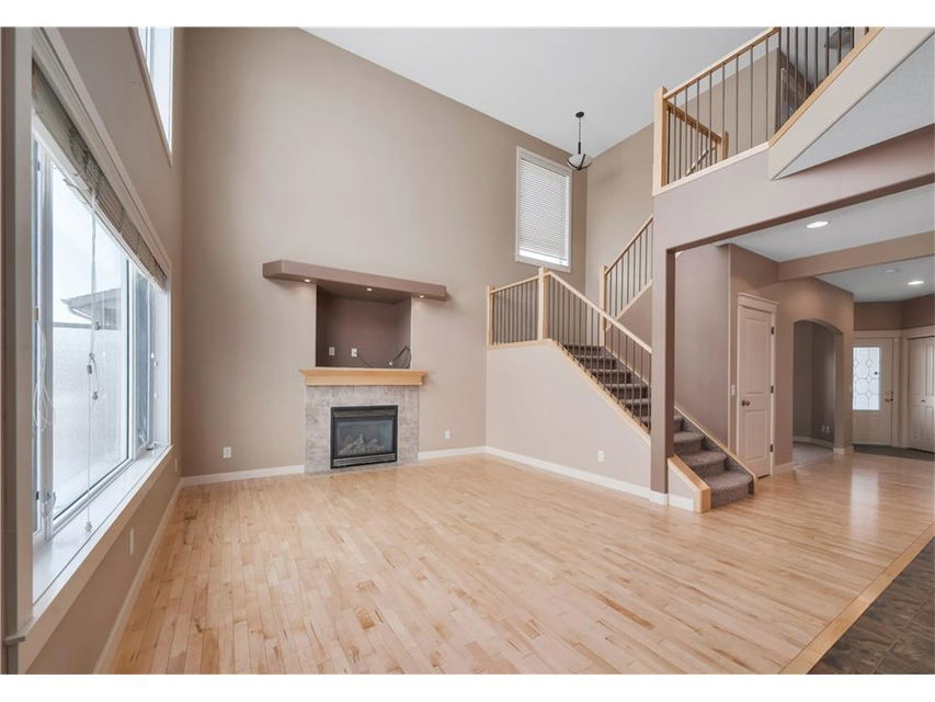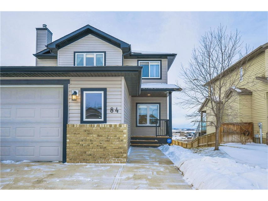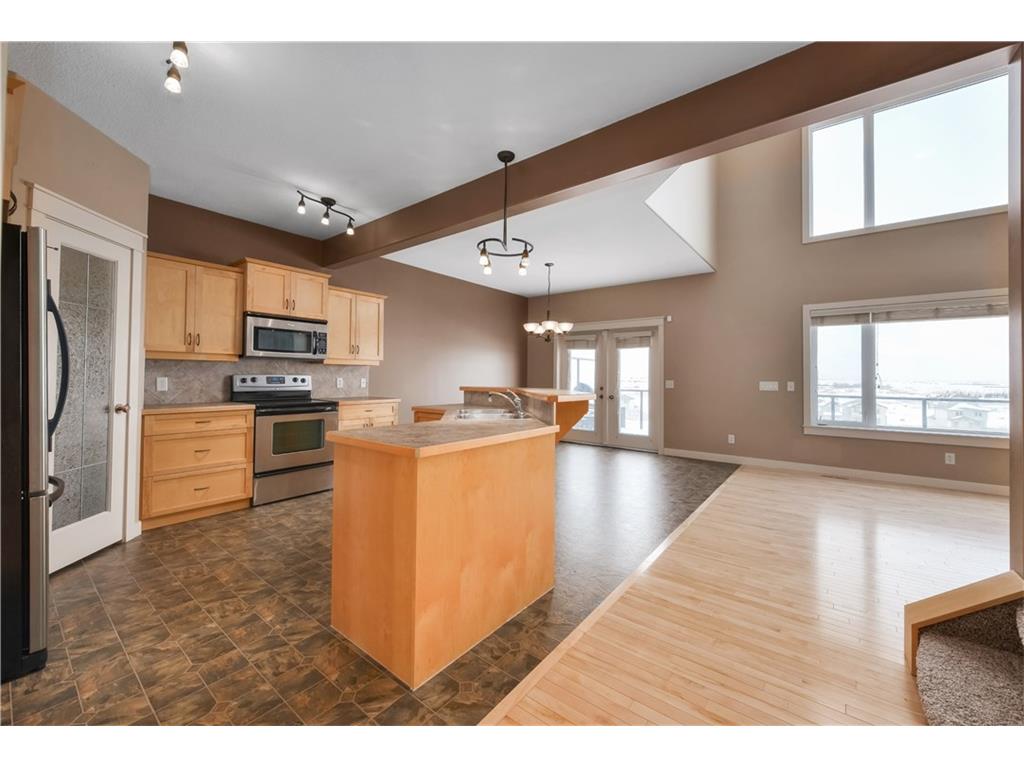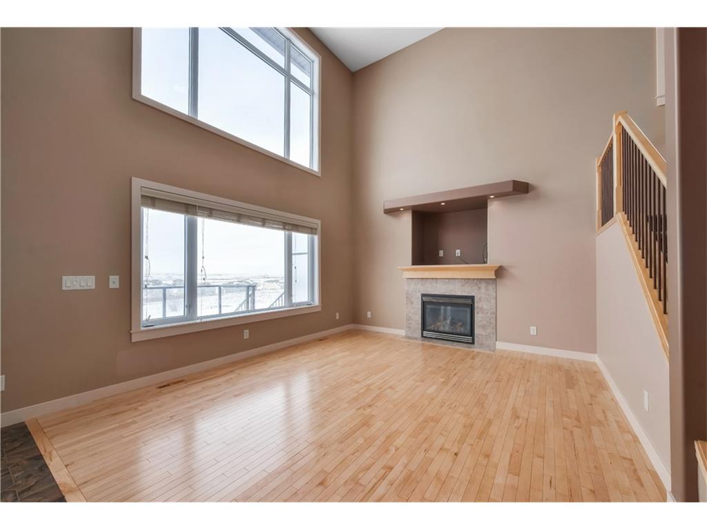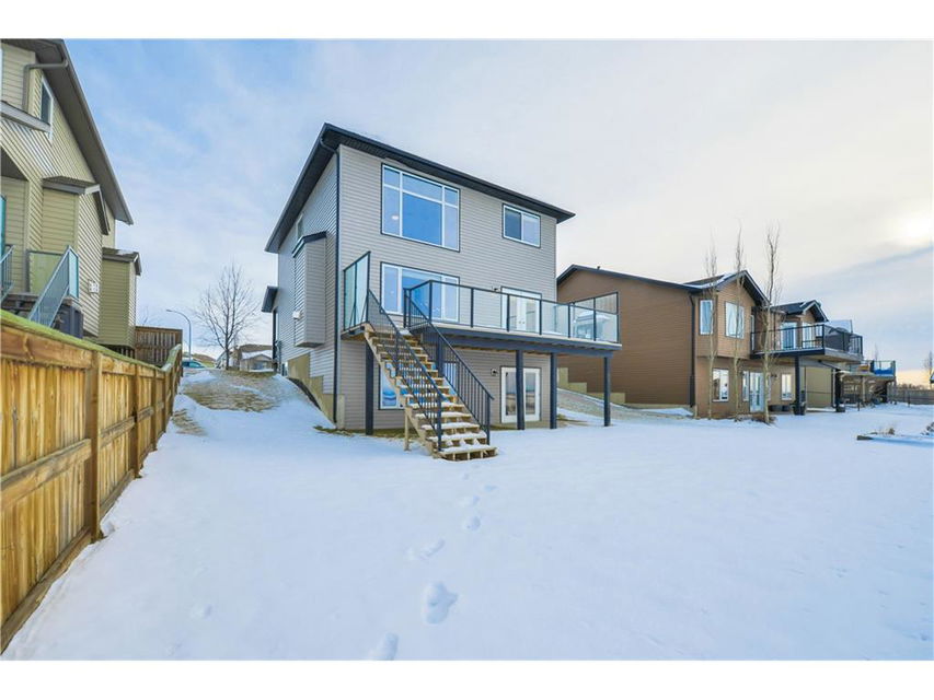 Contemporary 2-Storey home with walk-out basement, backing west onto the canal with mountain views. This home features high ceilings and hardwood floors. The maple kitchen is spacious with large island, stainless steel appliances, breakfast bar, and walk through pantry. There is a cozy gas fireplace in the living room adjacent. The main floor den is perfect for a home office right off the front entry. Laundry is located on the main floor. The upper level features a large master bedroom with spacious ensuite bath complete with jetted tub & separate shower. There are two more bedrooms and a total of 2.5 bathrooms. This home is equipped with central air conditioning and a alarm system. Enjoy the scenic west views of the mountains. Walk the rear pathways at your gate. You will not be disappointed when you see what this home and neighborhood have to offer. Ready for immediate possession.